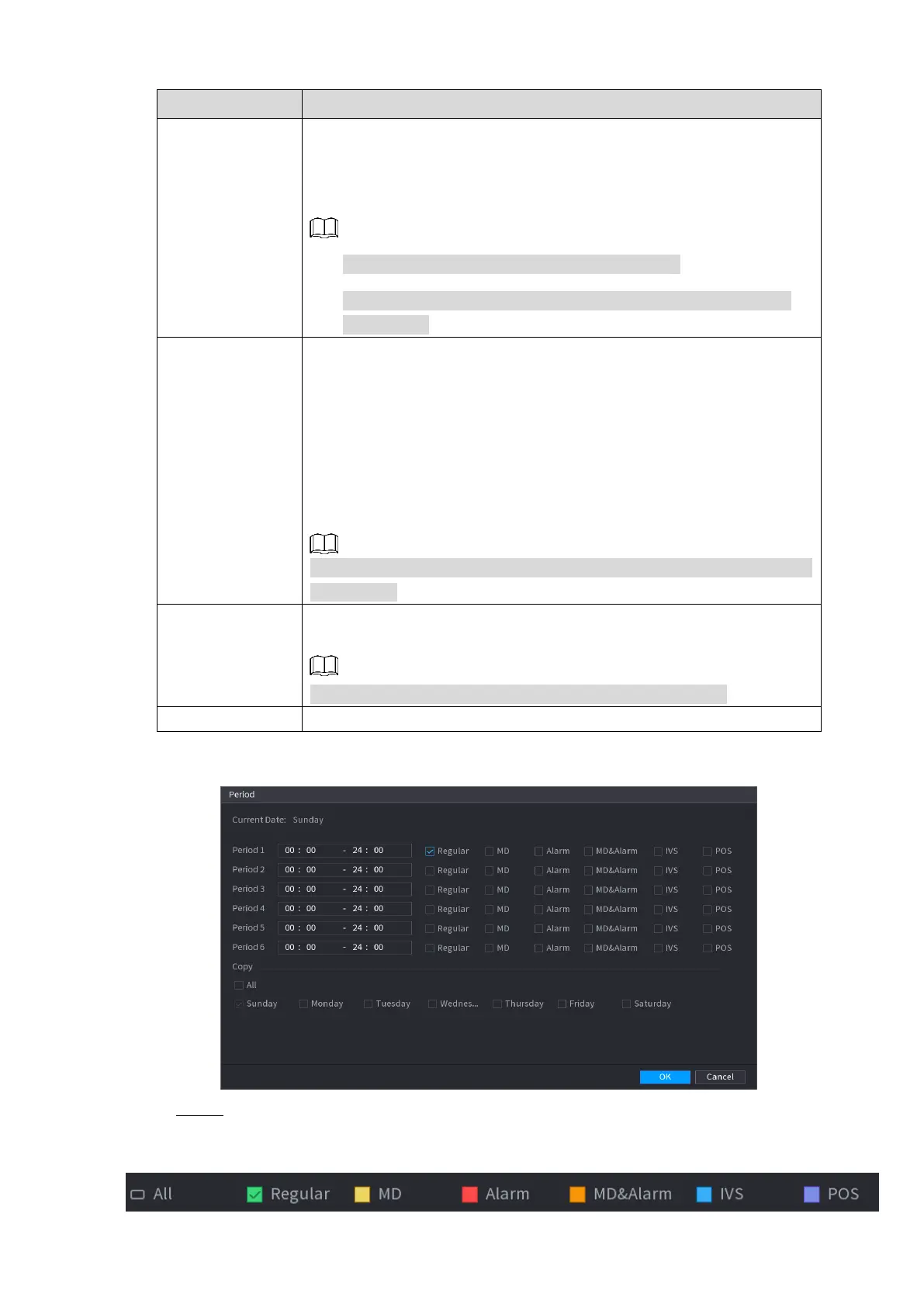 Define a period during which the configured recording setting is