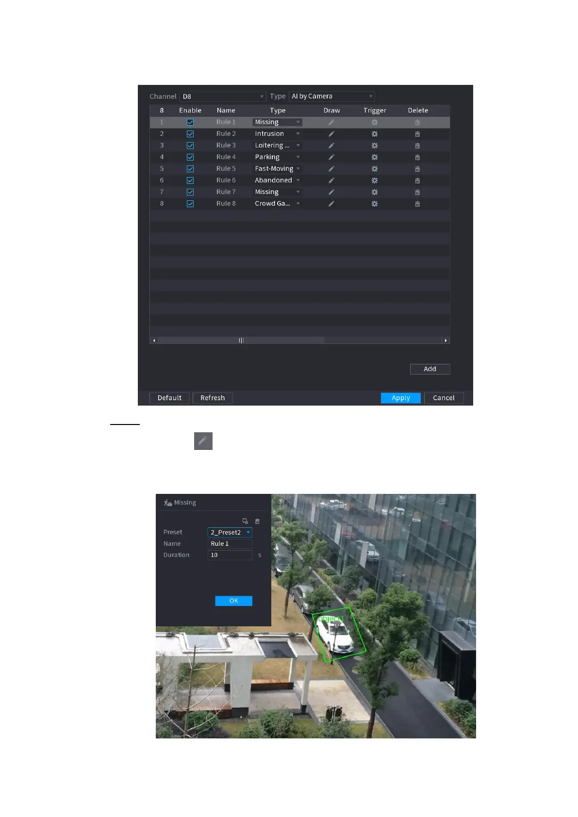 1) Click to draw the rule on the surveillance video. See Figure 4-143.