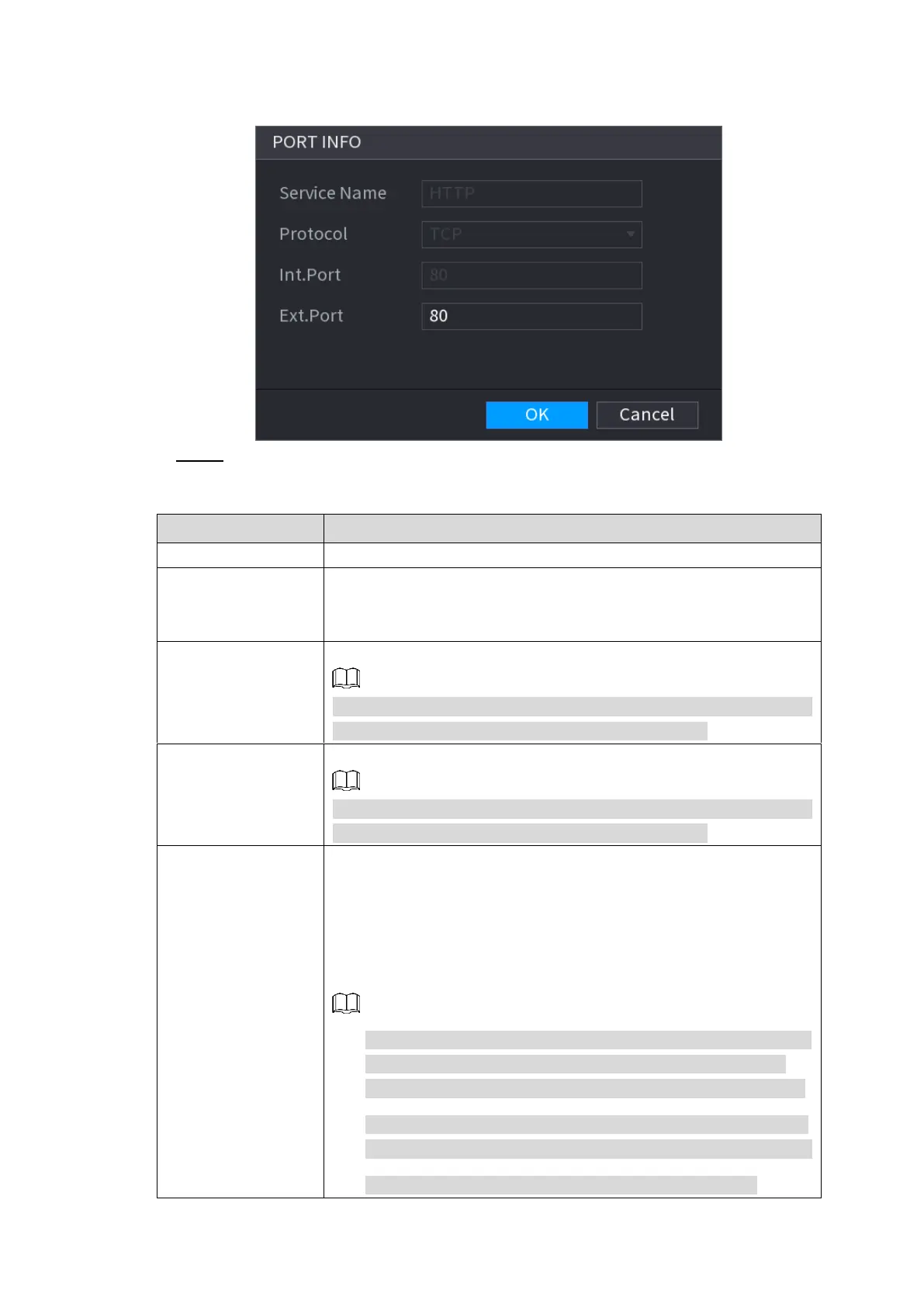 Int. Port: Internal port that is mapped on the Device.