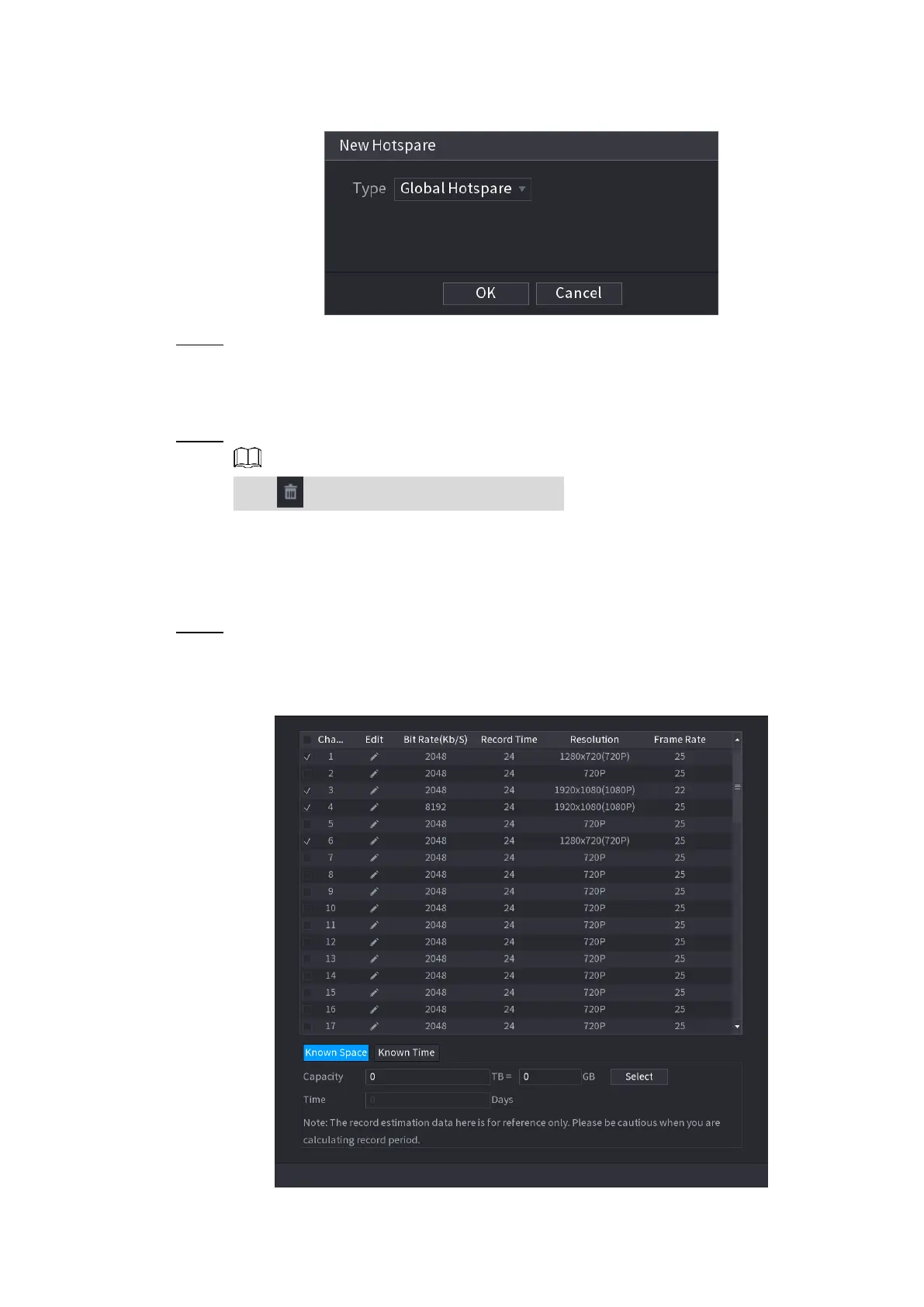 Step 1 Select Main Menu > STORAGE > REC ESTIMATE.