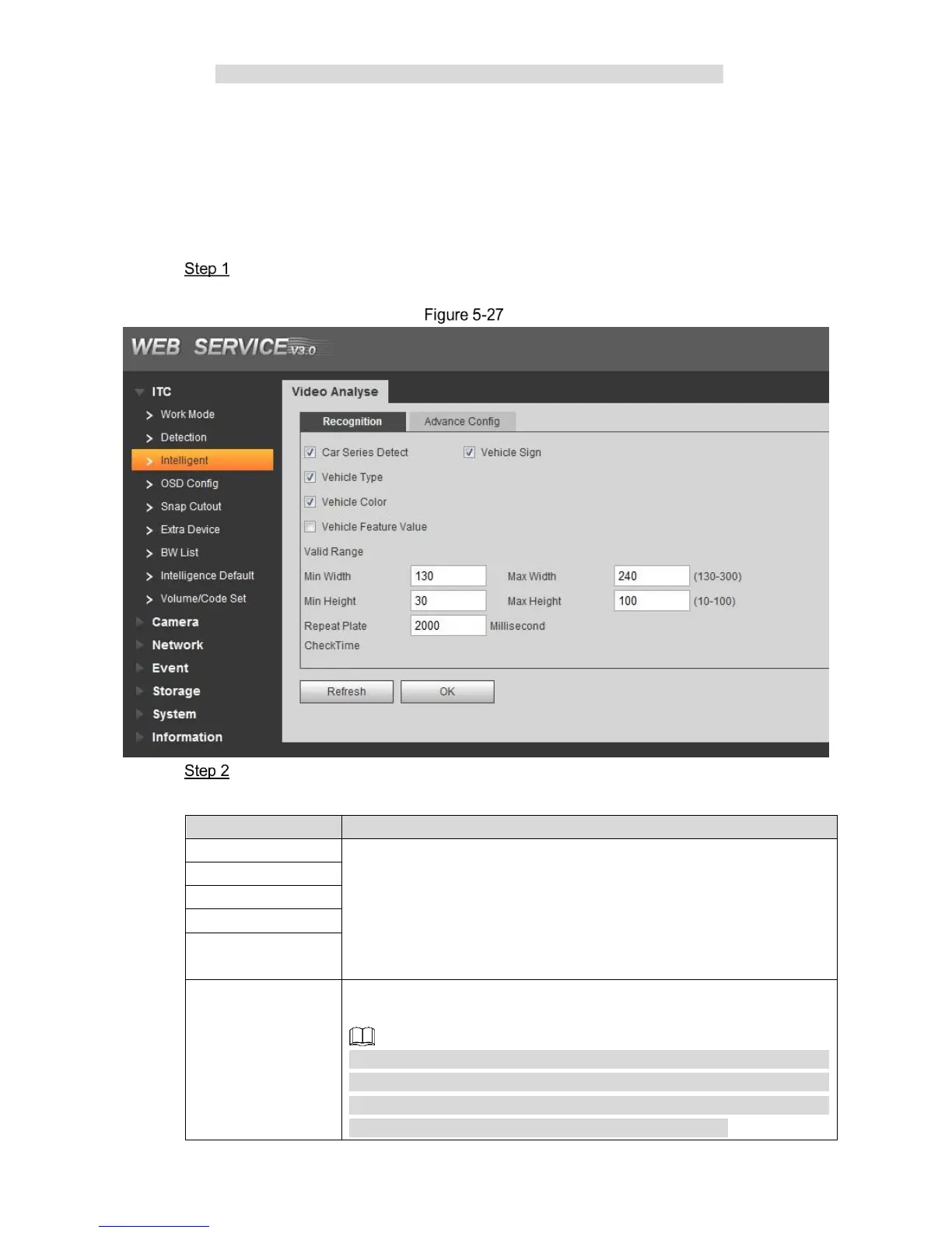 In this section, you can set vehicle recognition parameter, recognition mode and some other