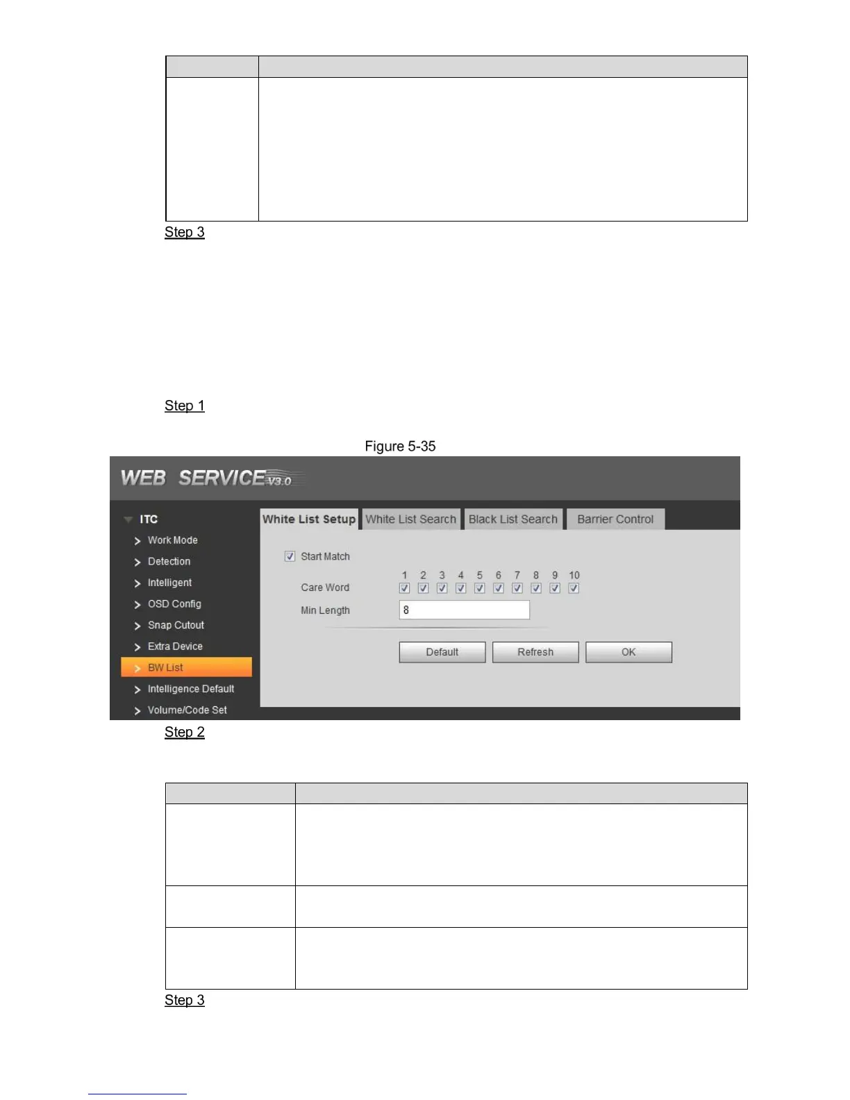 White list setup parameters description