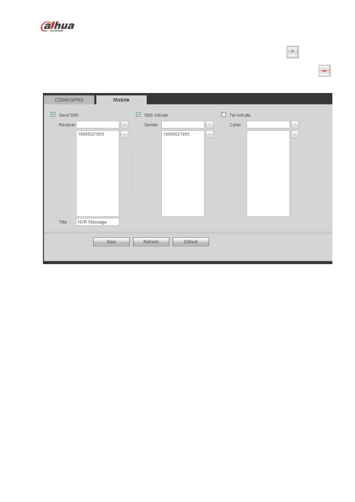 Check send SMS box and then input the phone number in the receiver column. Click to add one