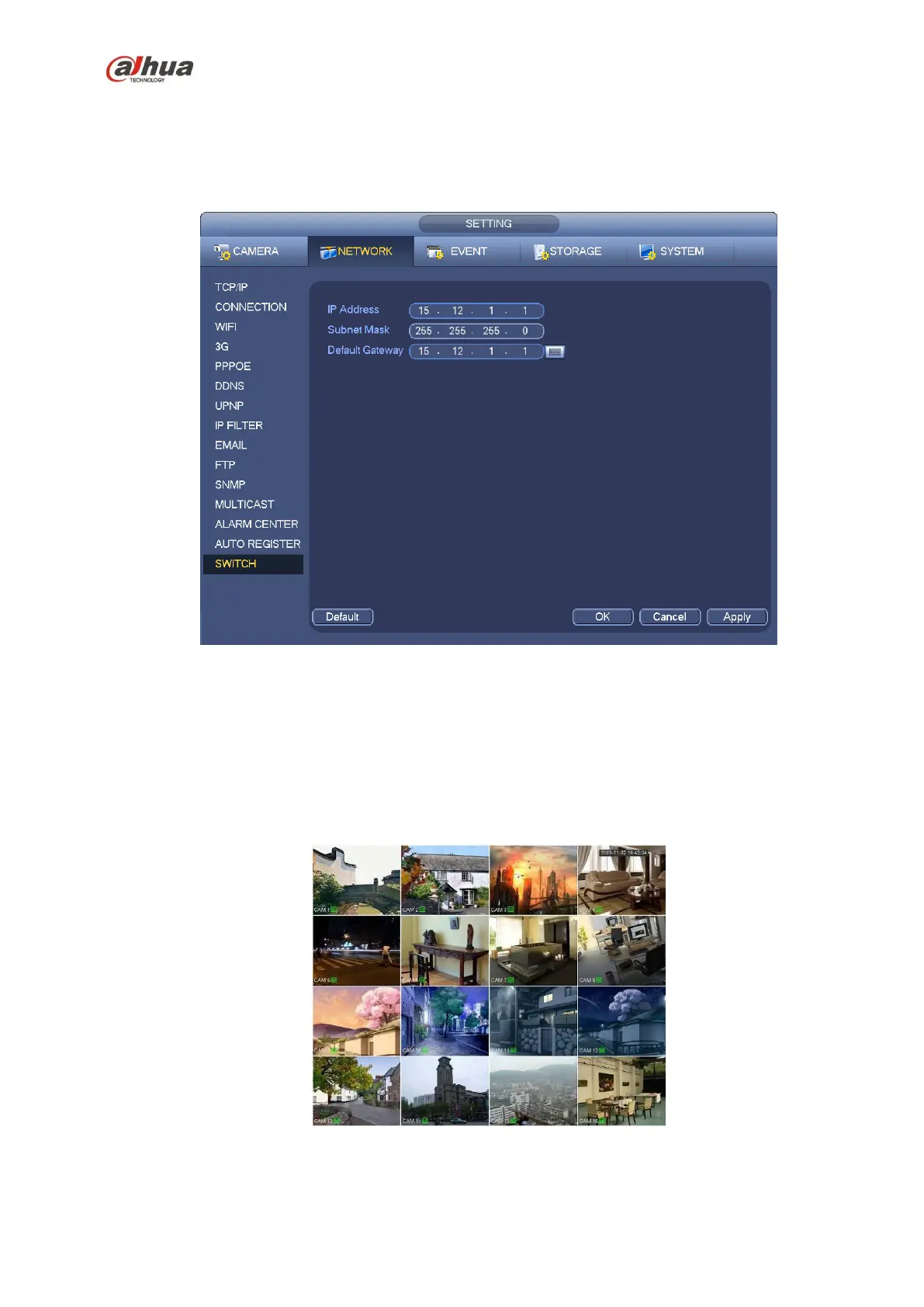 From Main menu->Setting->Network->Switch, you can set switch IP address, subnet mask, gateway and