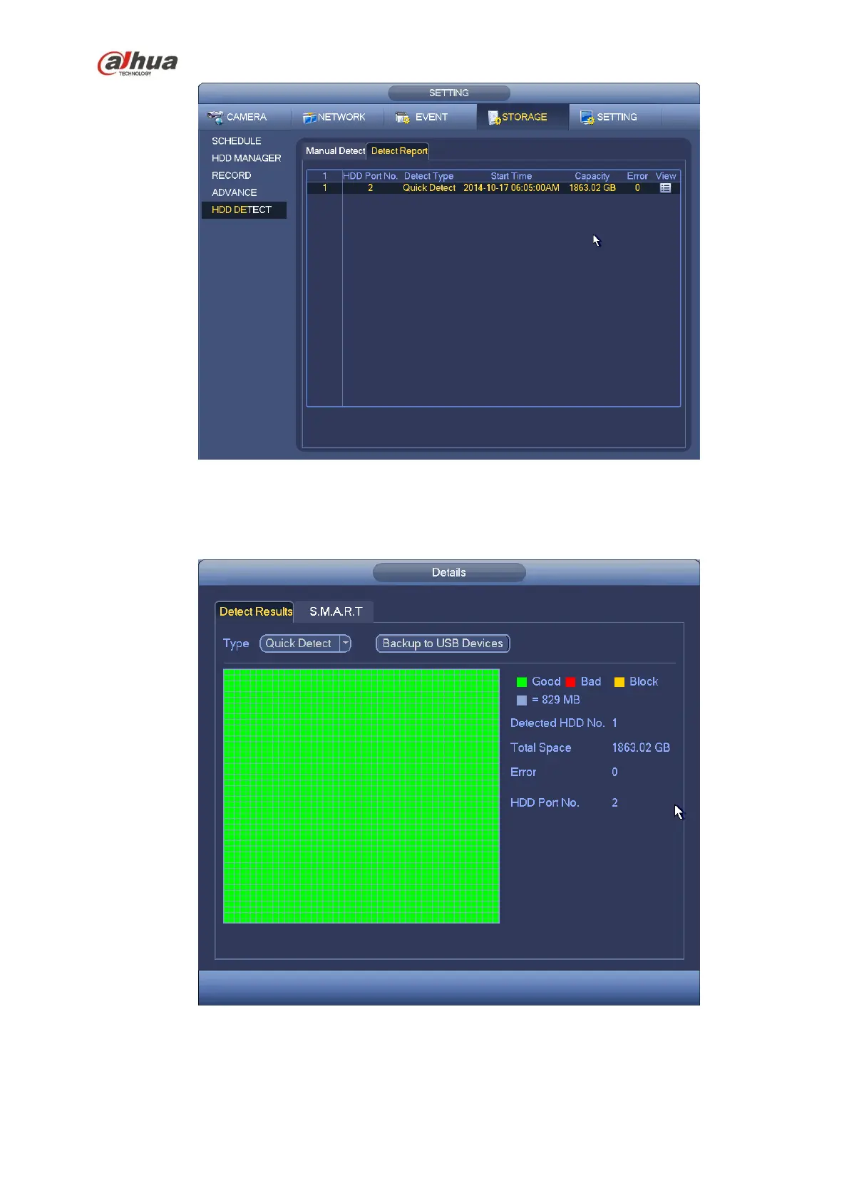 Click View, you can see the detailed information such as detect result, backup and S.M.A.R.T. See Figure