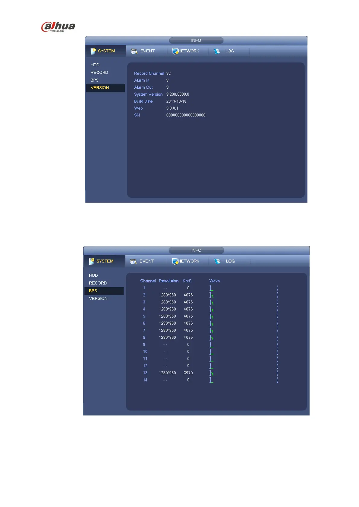 Here is for you to view current video bit rate (kb/s) and resolution. See Figure 4-163.