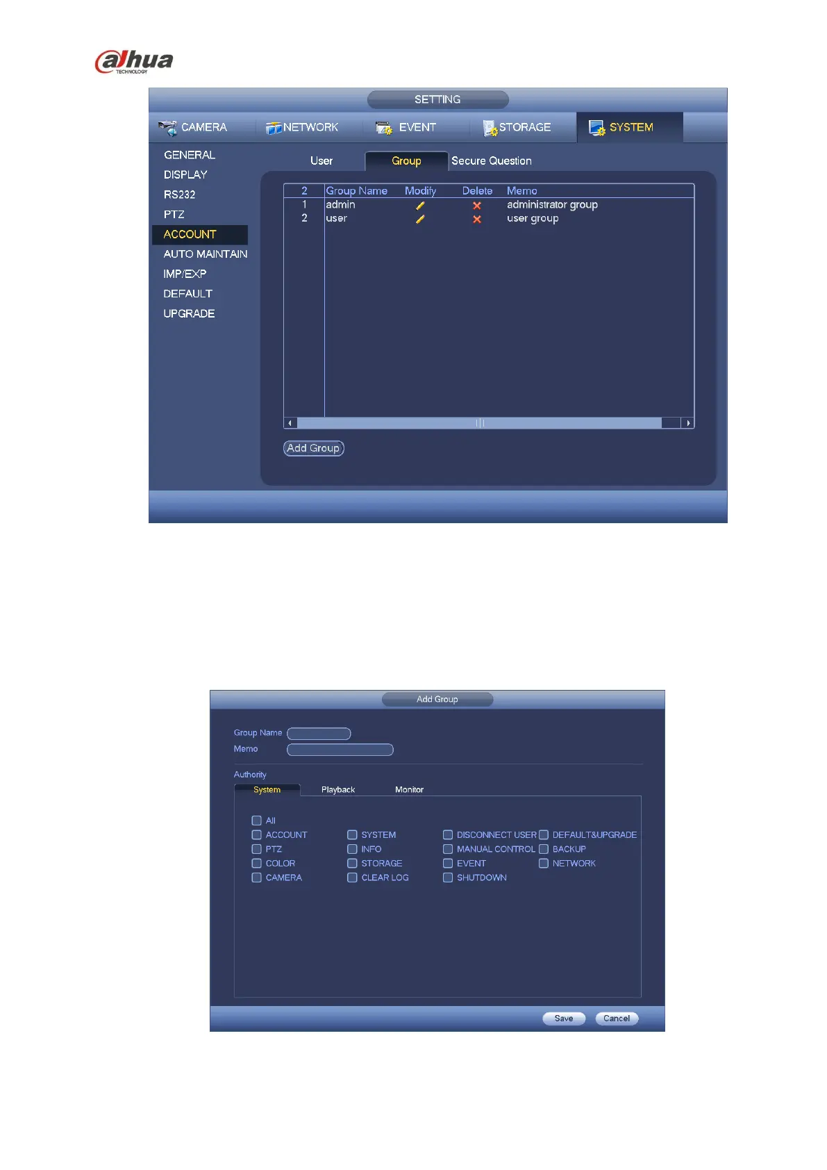 Click add group button in Figure 4-178 , the interface is shown as below. See Figure 4-179.