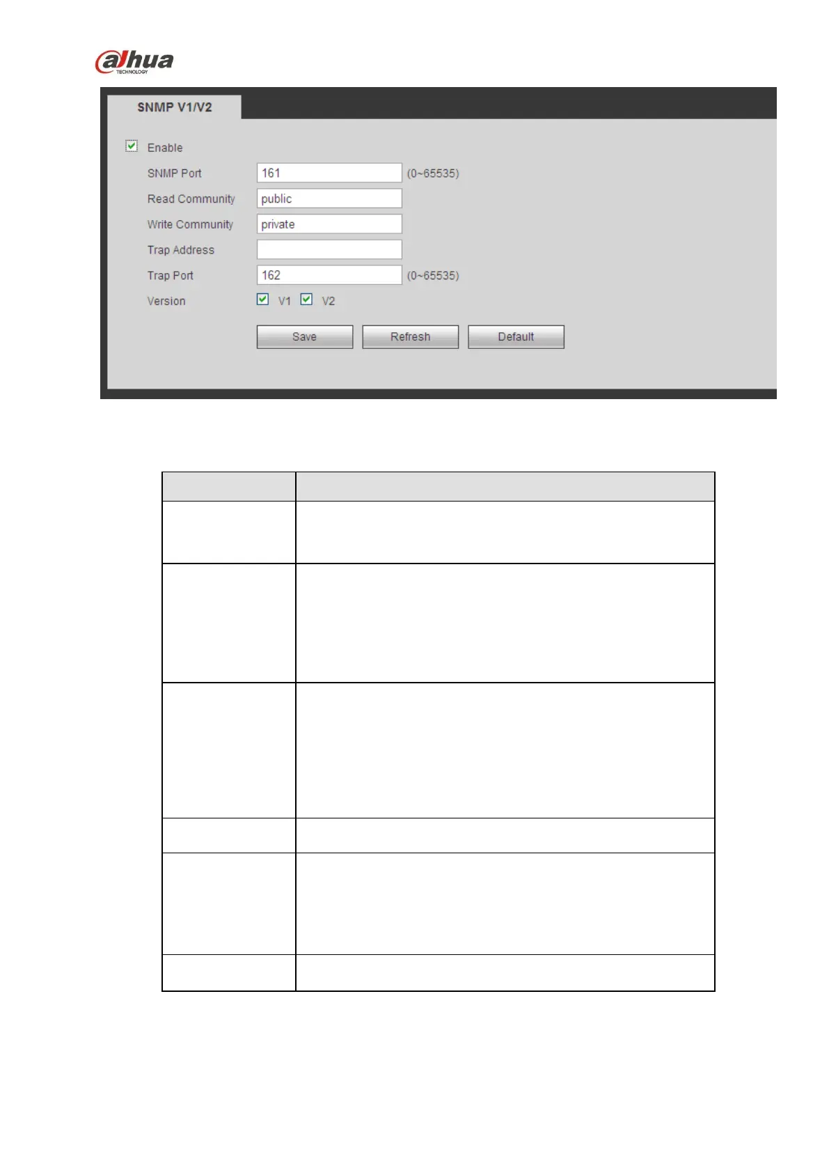 SNMP supported in the specified name. The default setup is