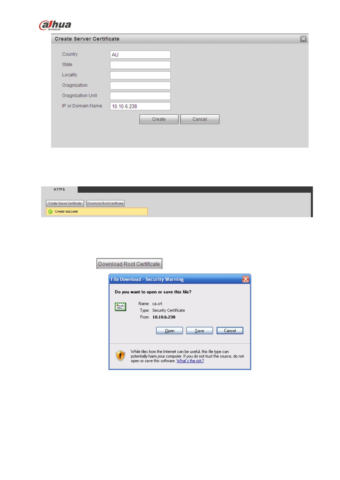 You can see the corresponding prompt. See Figure 5-45. Now the server certificate is successfully