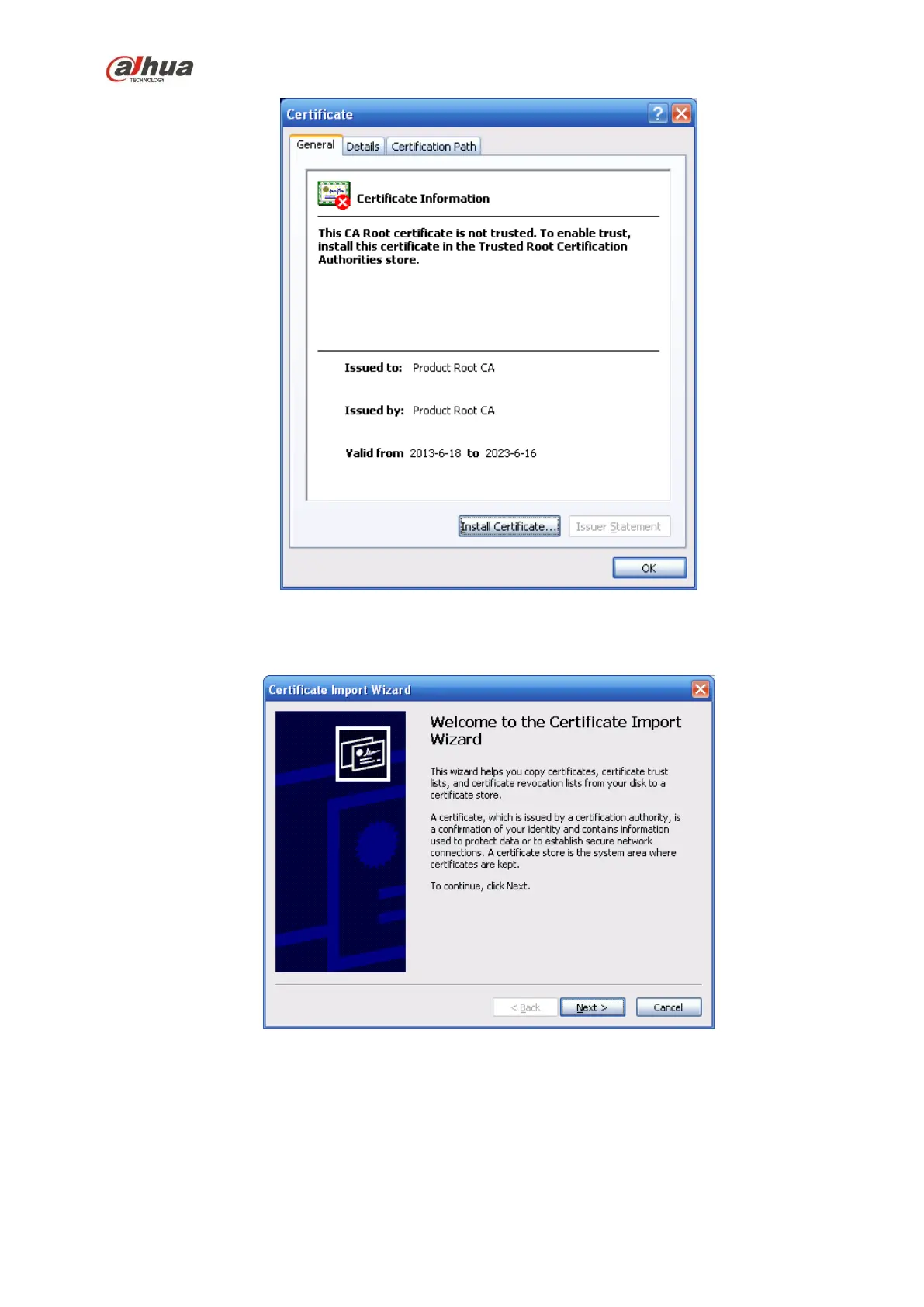 Click Install certificate button, you can go to certificate wizard. See Figure 5-48.
