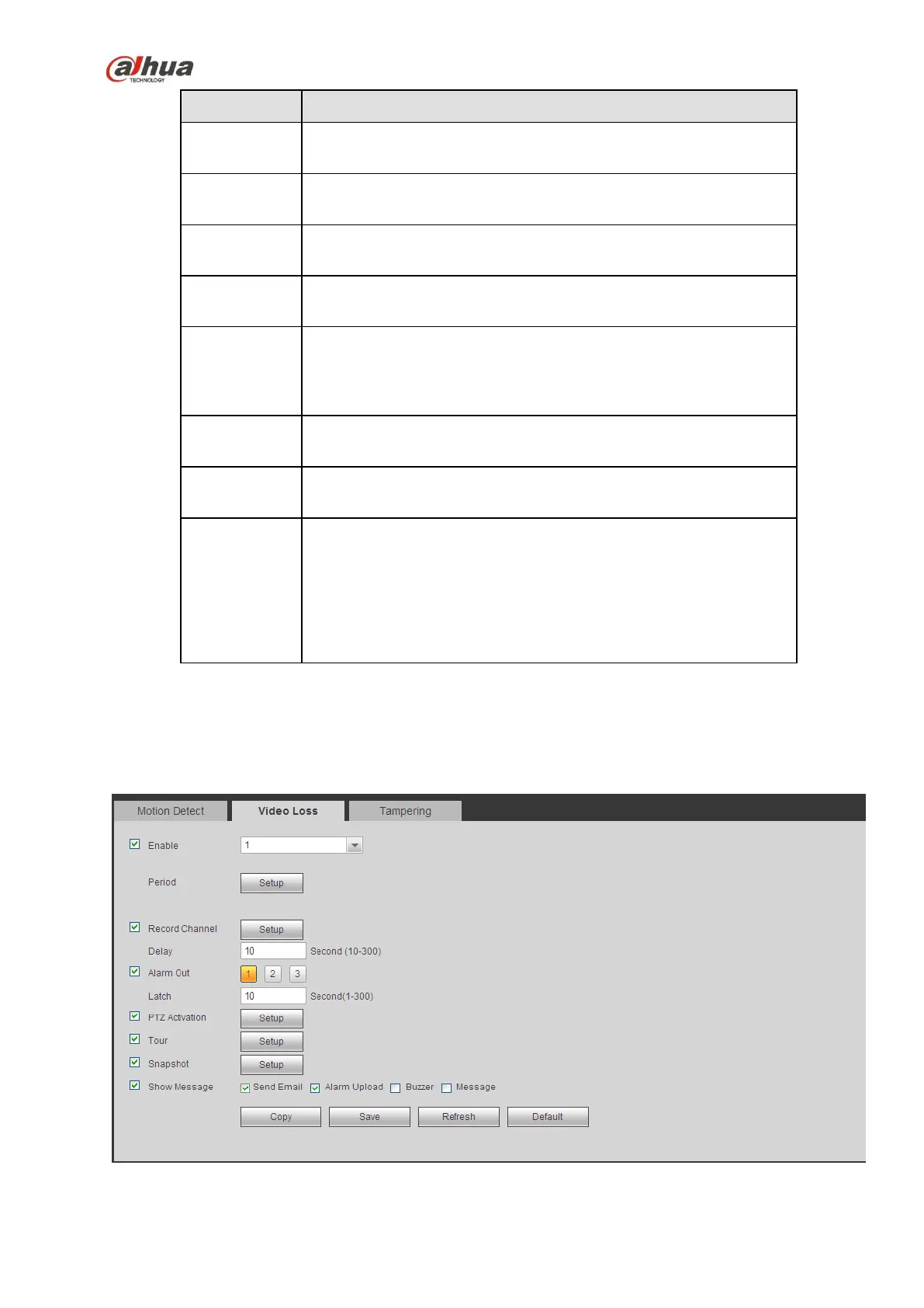 Please note video loss does not support anti-dither, sensitivity, region setup. For rest setups, please refer