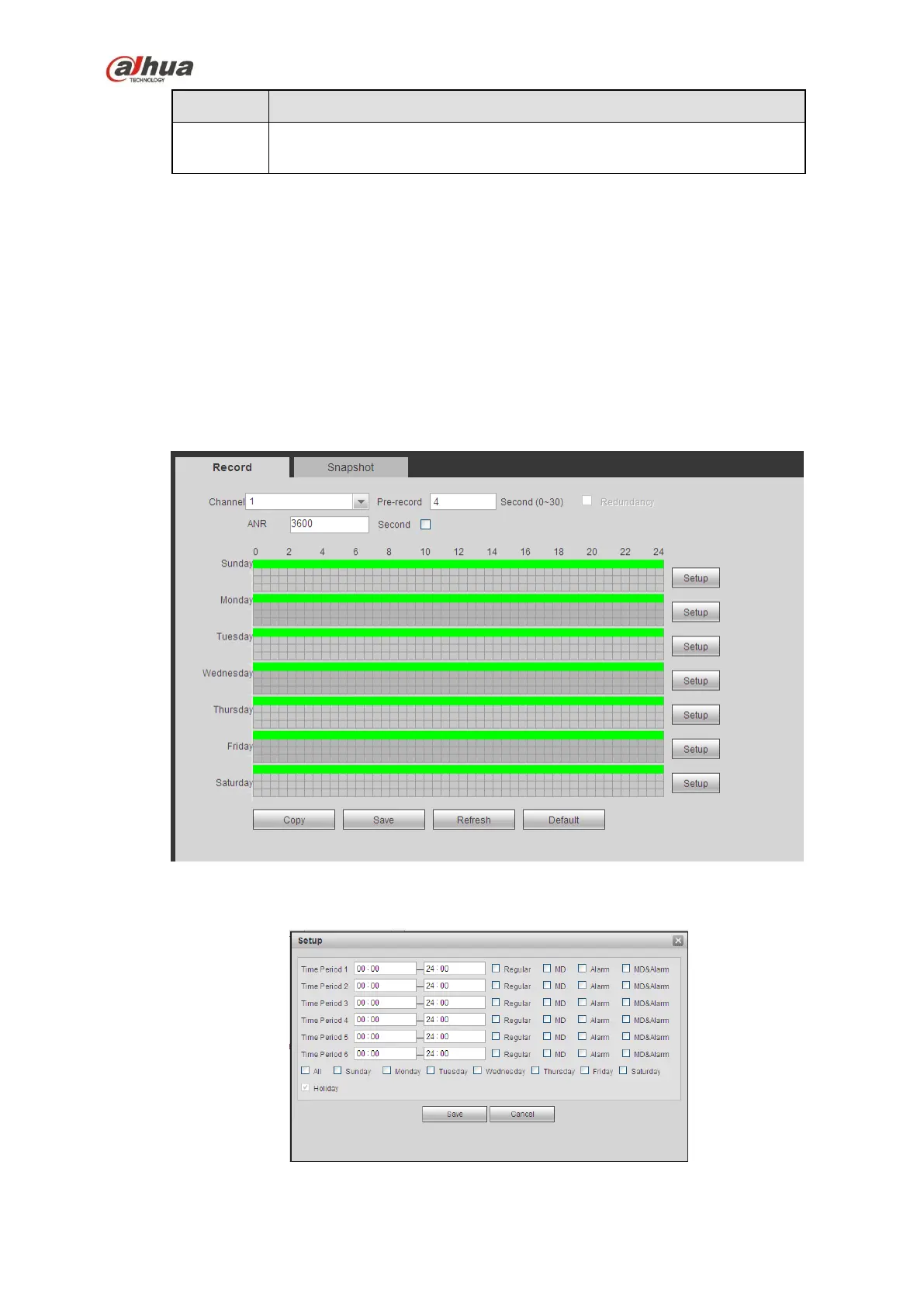 There are four record modes: general (auto), motion detect, alarm and MD&alarm. There are six periods