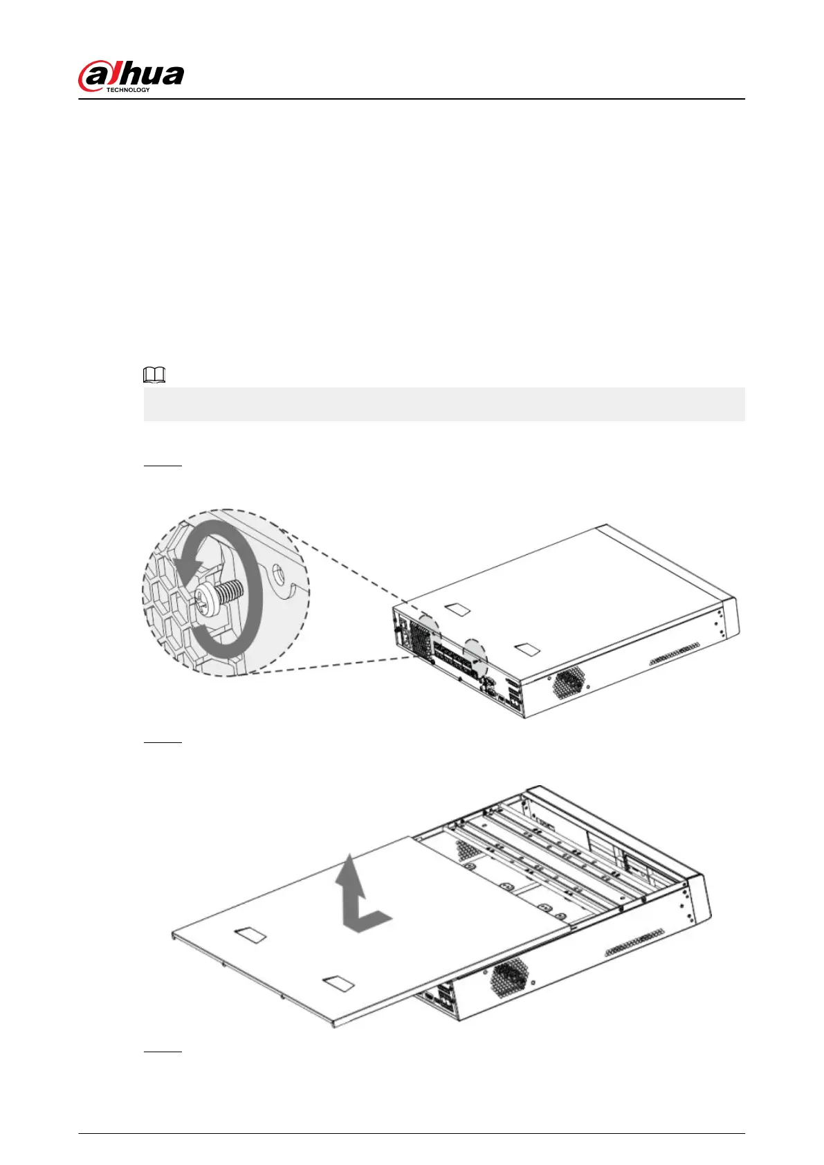 Step 1 Remove the xing screws on the rear panel of the device.