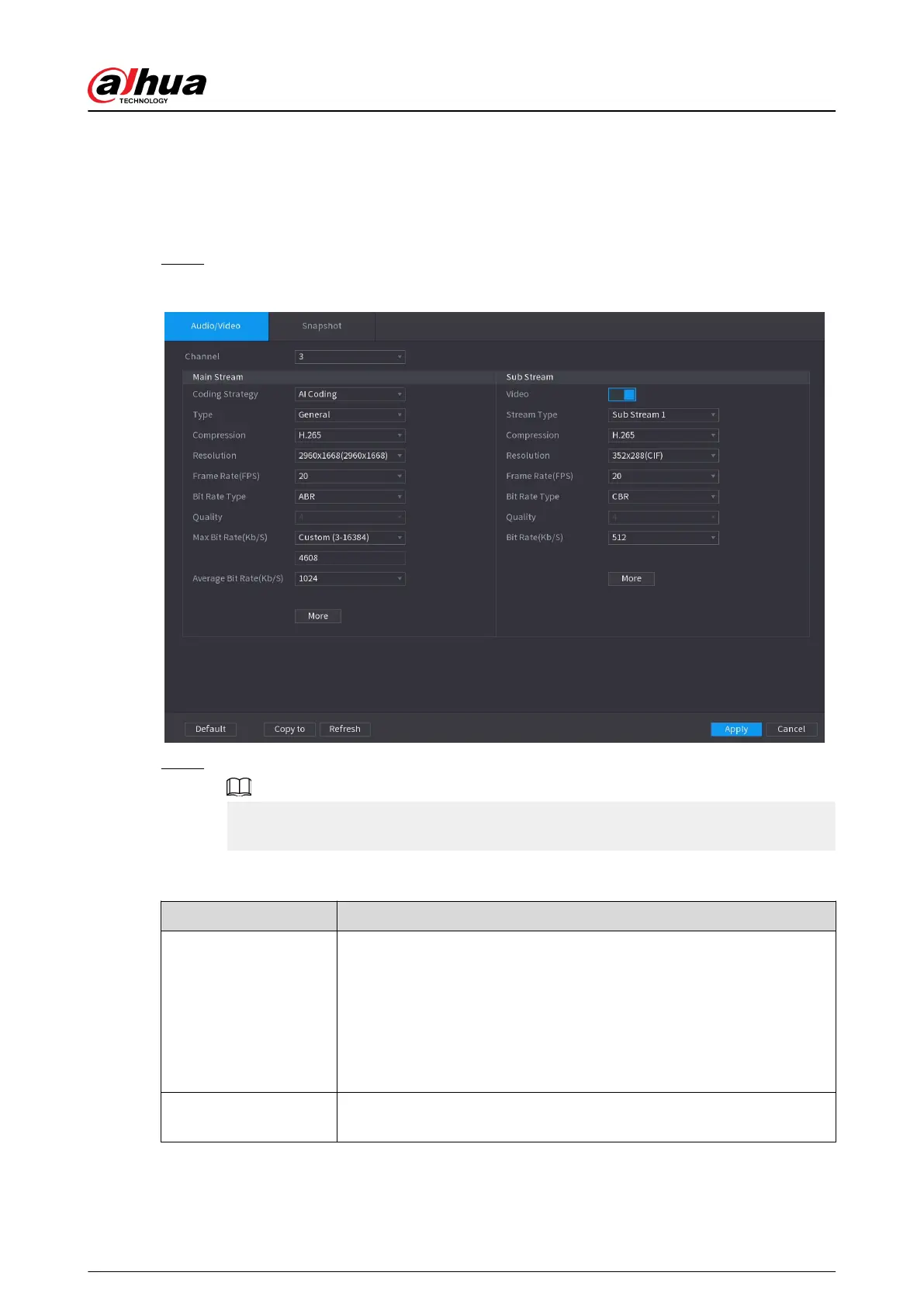 Step 1 Select Main Menu > CAMERA > Encode > Audio/Video.