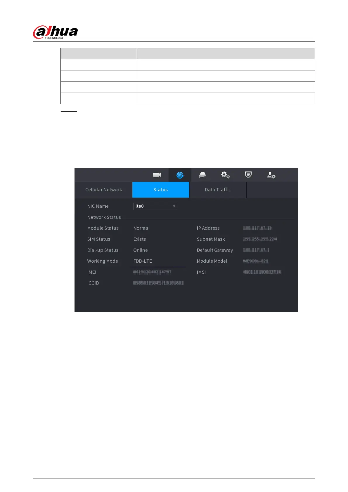 Click the Status tab to check cellular network status such as IP address, SIM card status and dial-