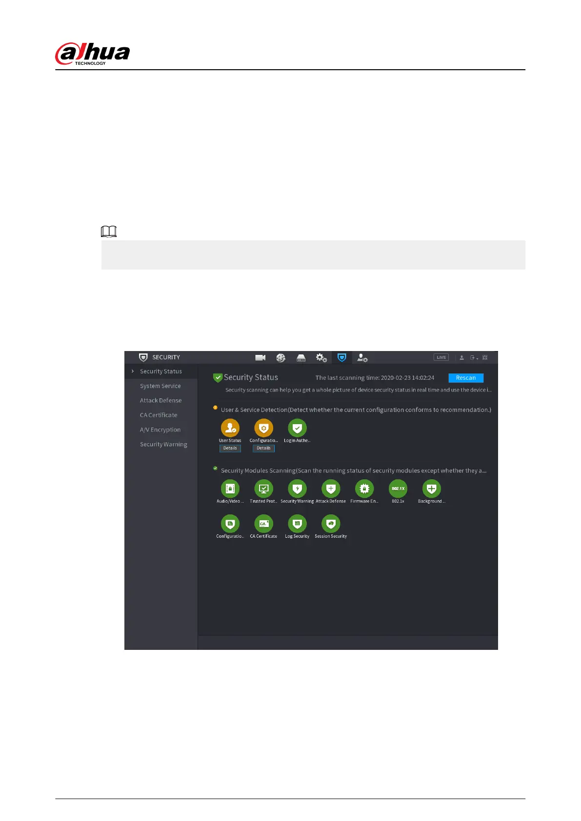 Login authentication: When there’s a risk in the device conguration, the icon will be in orange