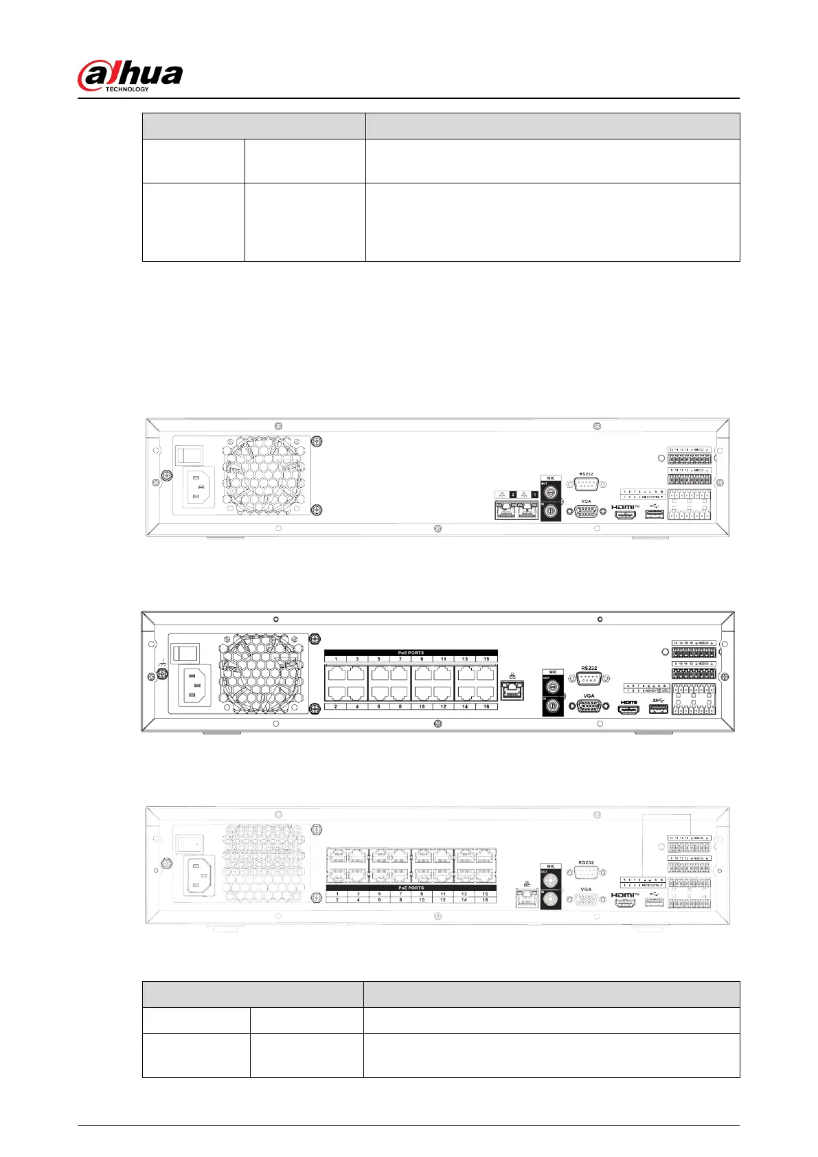 The NVR48-16P-4KS2/NVR48-16P-4KS2/L/NVR48-16P-4KS2/I series rear panel is shown as below.