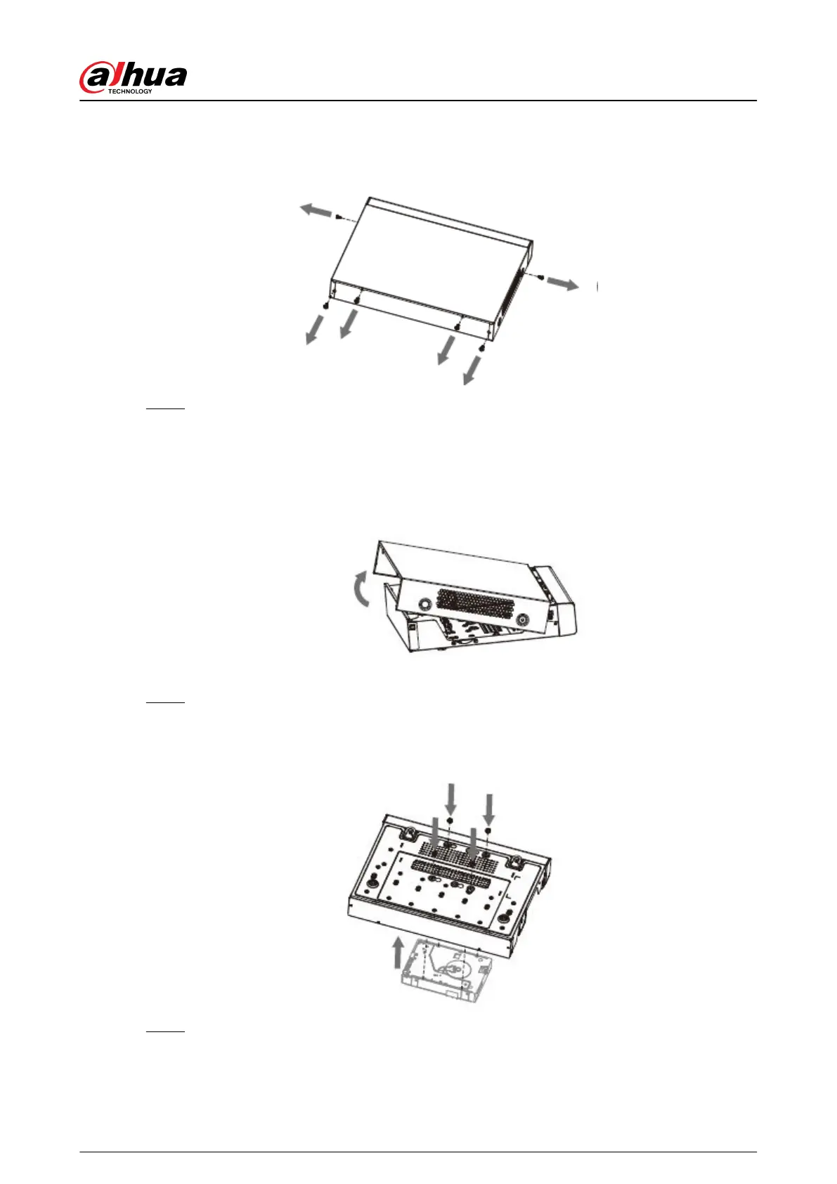 Step 3 Turn over the device, and align the HDD to the four holes of bottom panel, and then x