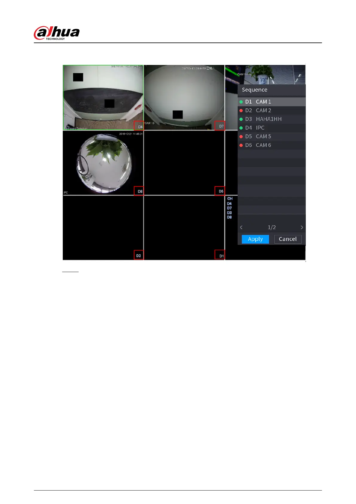 After you change the channel sequence, click Cancel or right-click the live view page, the