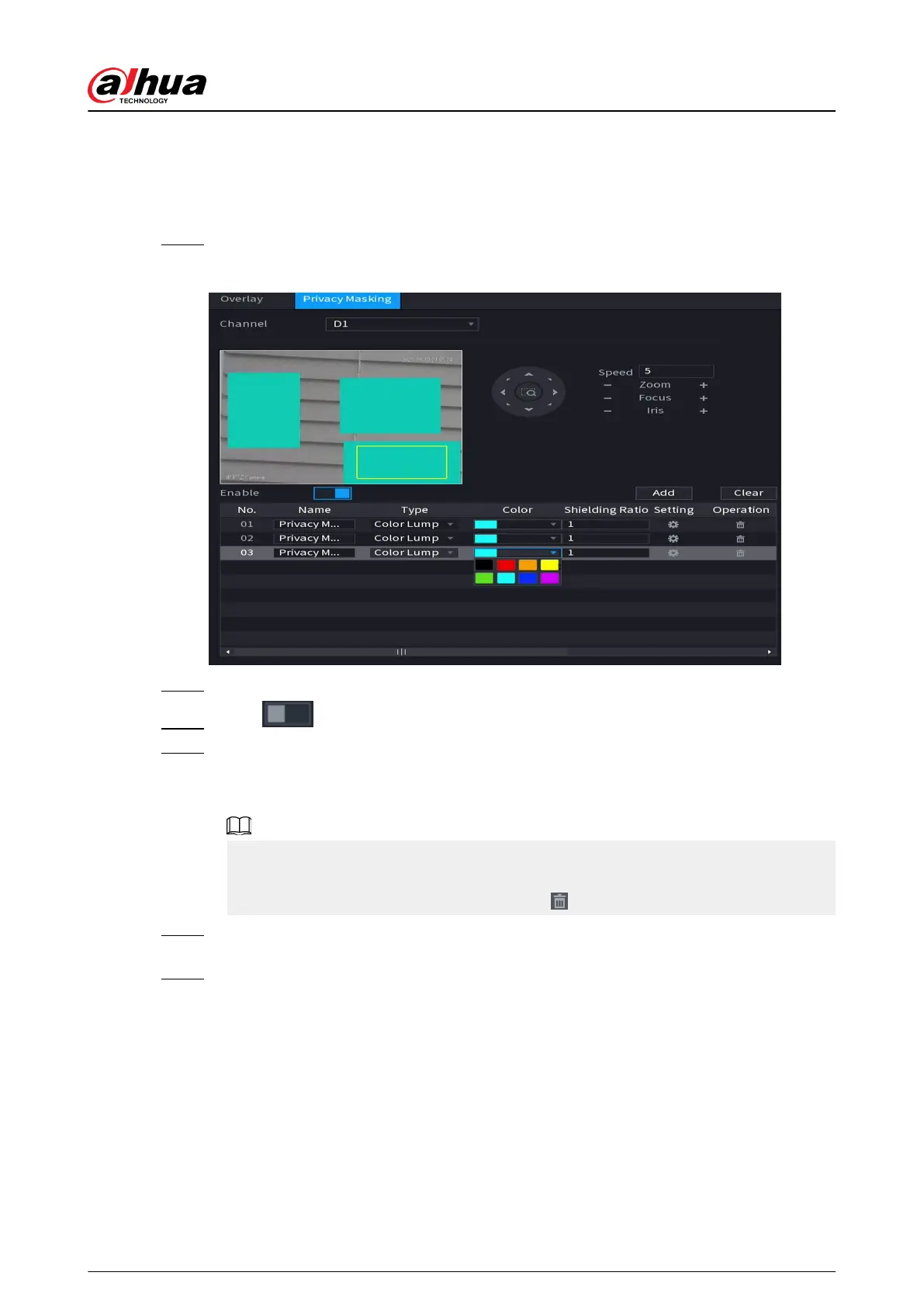 Step 1 Select Main Menu > CAMERA > Overlay > Privacy Masking.