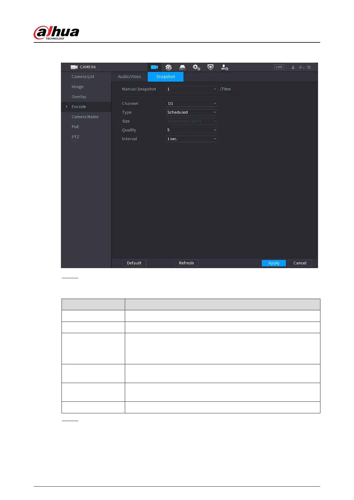 Manual Snapshot Select the number of snapshots that you want to take each time.