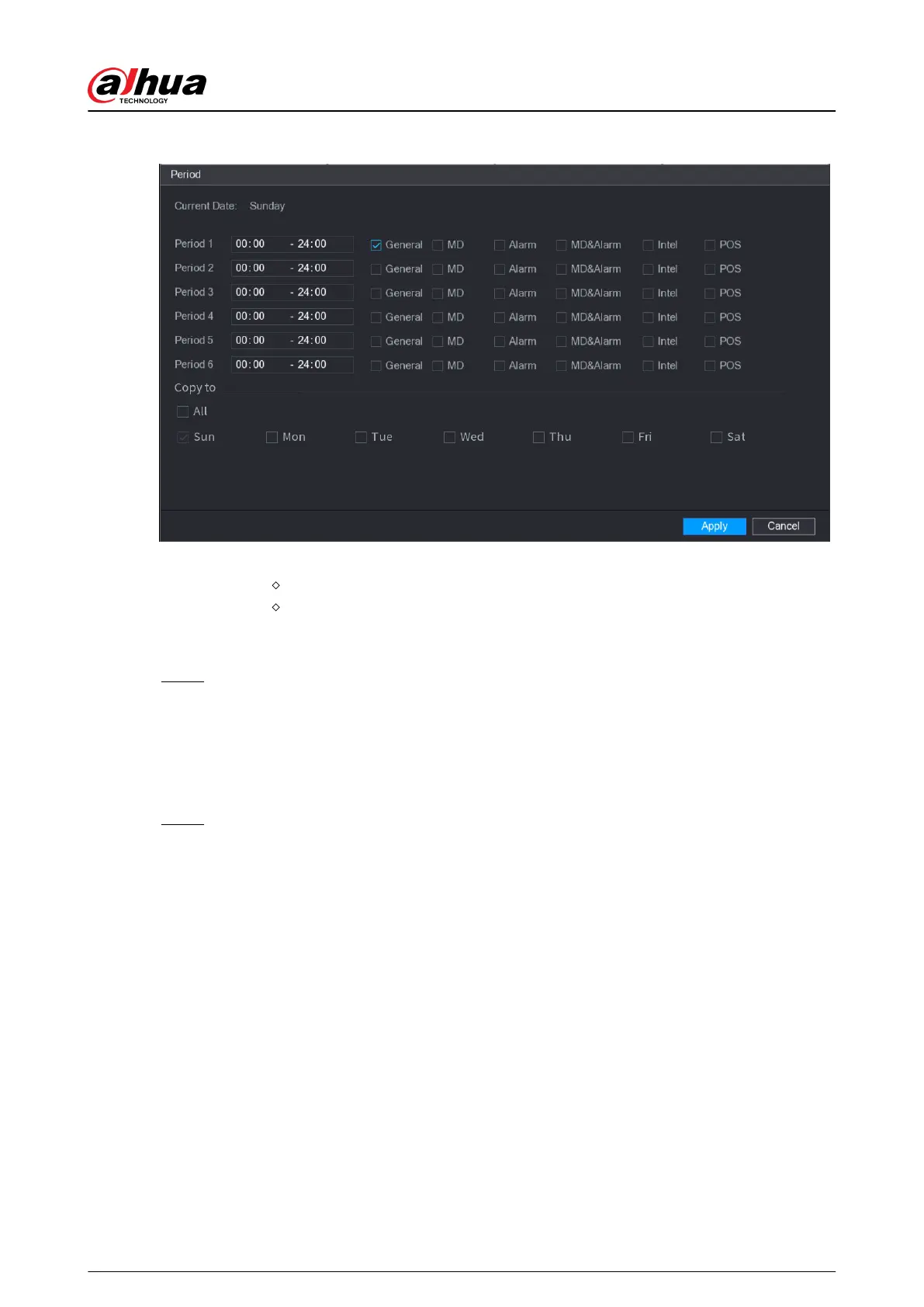 Under Copy to, select All to apply the settings to all the days of the week, or