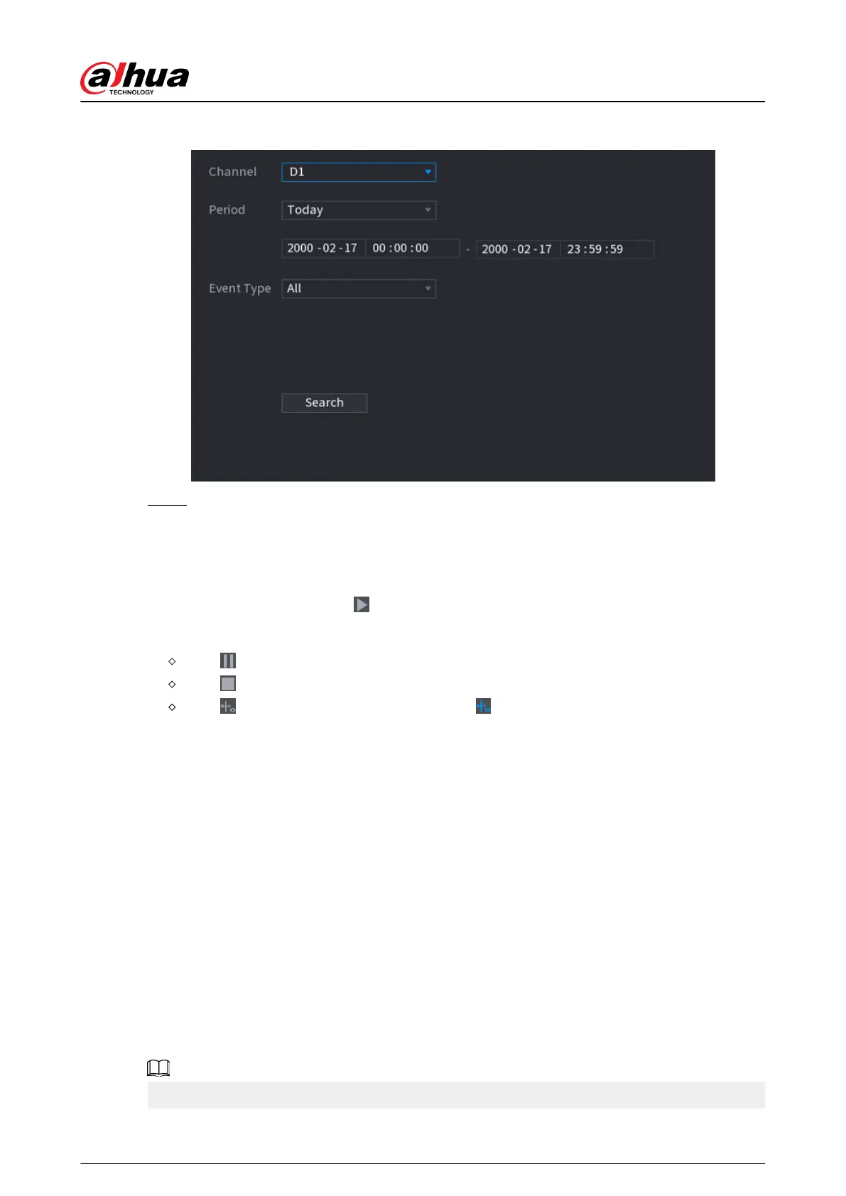 Step 2 Select a channel, start time, end time, event type, and then click Search.