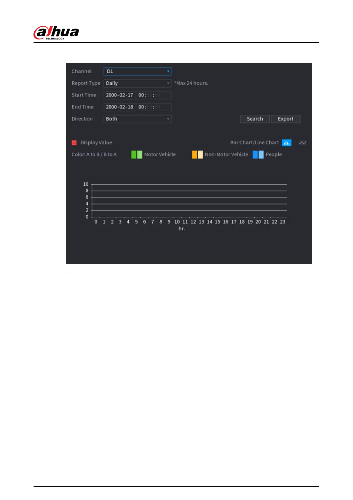 Step 2 Select channel, report type, start time and end time, direction and then click Search.