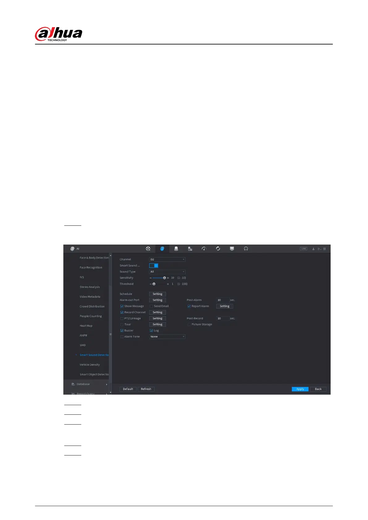Step 1 Select AI > Parameters > Smart Sound Detection.