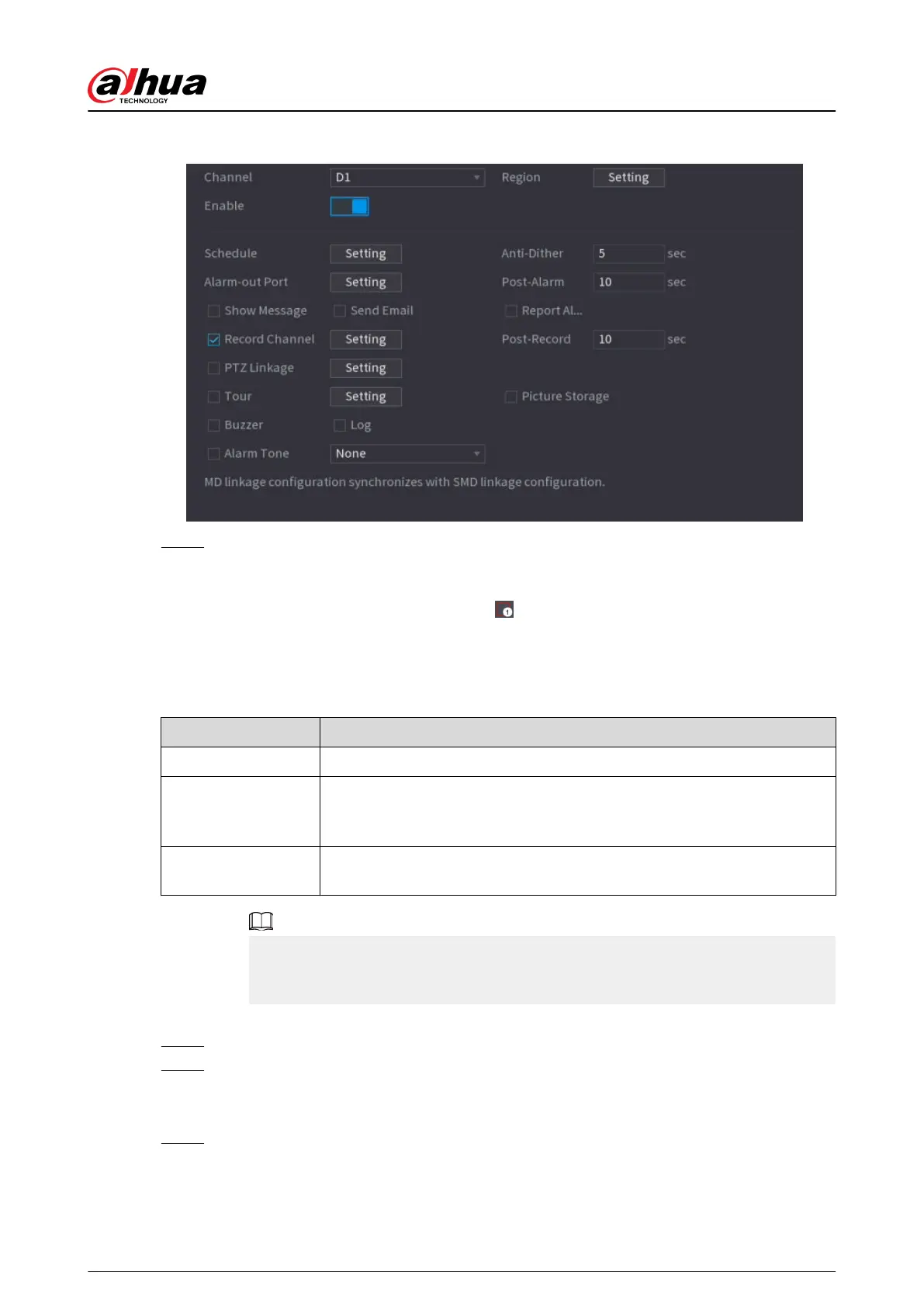 activates motion detection alarm, the channel where this region belongs to will