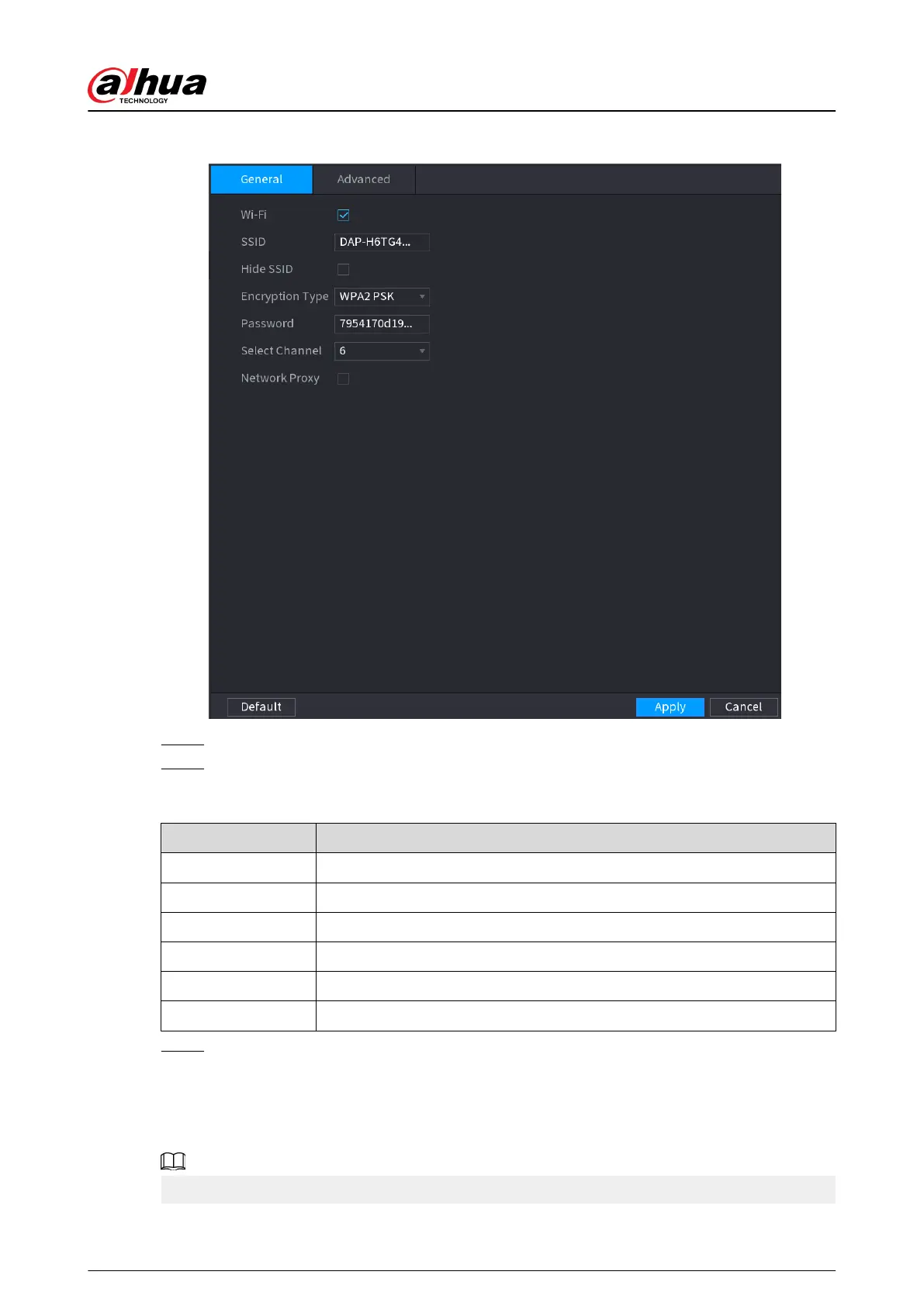 Password Set the Wi-Fi password for the Device.