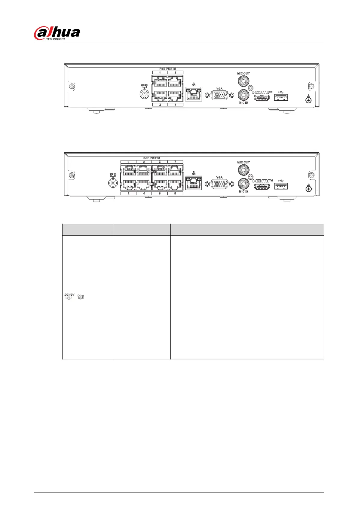 NVR41HS-EI/NVR41HS-4KS3 series, input 12 VDC/2 A.