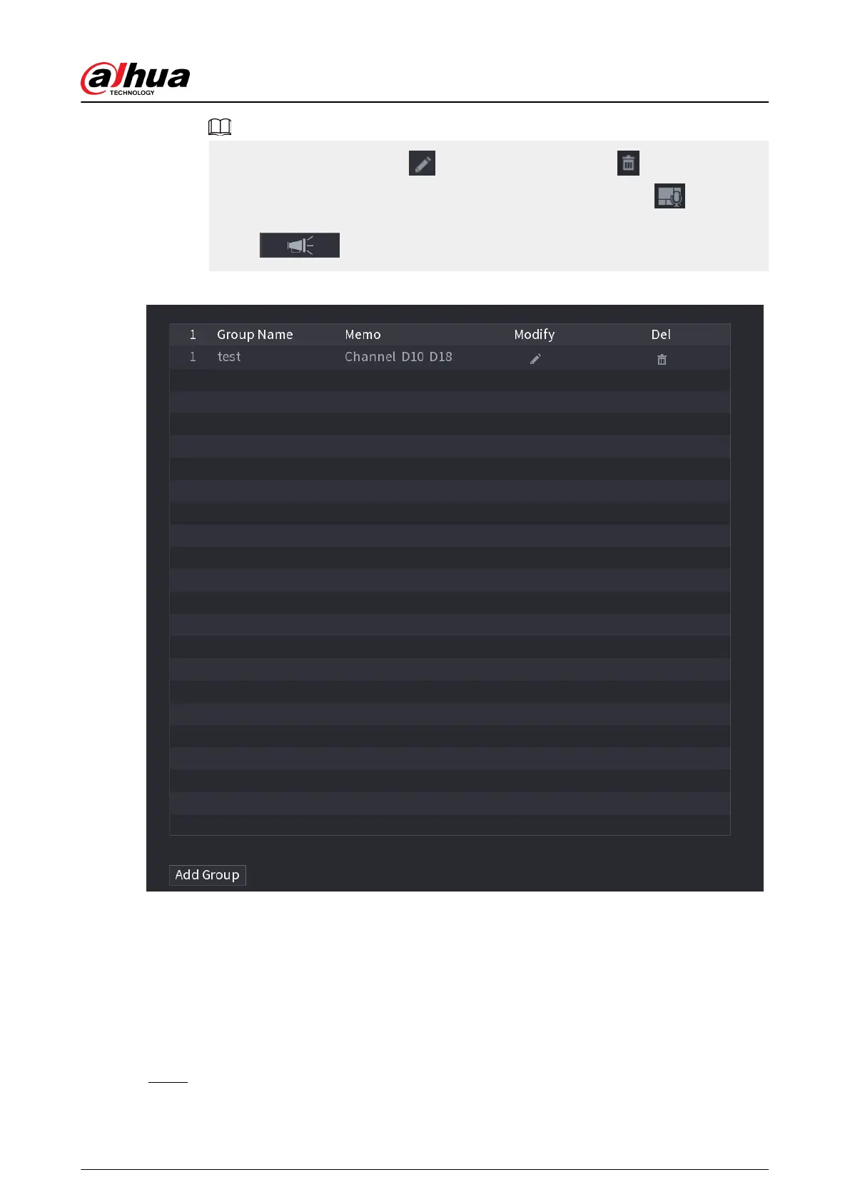 navigation bar, device pops up broadcast dialogue box. Select a group name and then