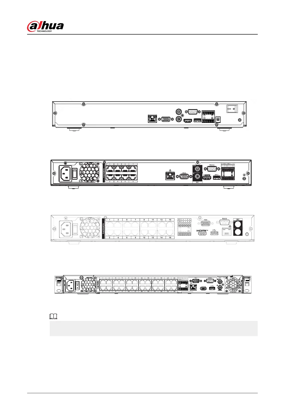 The following gure takes NVR52-16P-4KS2E series as an example. NVR52-8P-4KS2E has 8 PoE ports