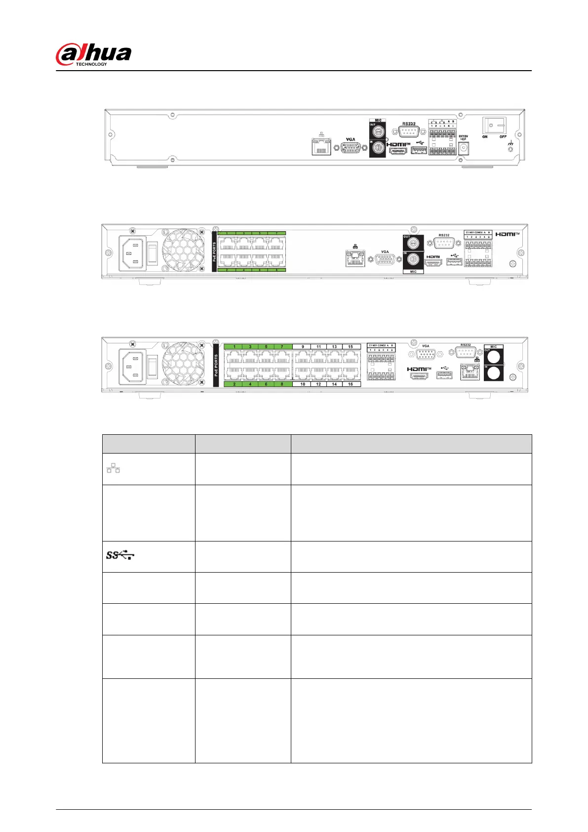 The NVR52-16P-XI series rear panel is shown as below.