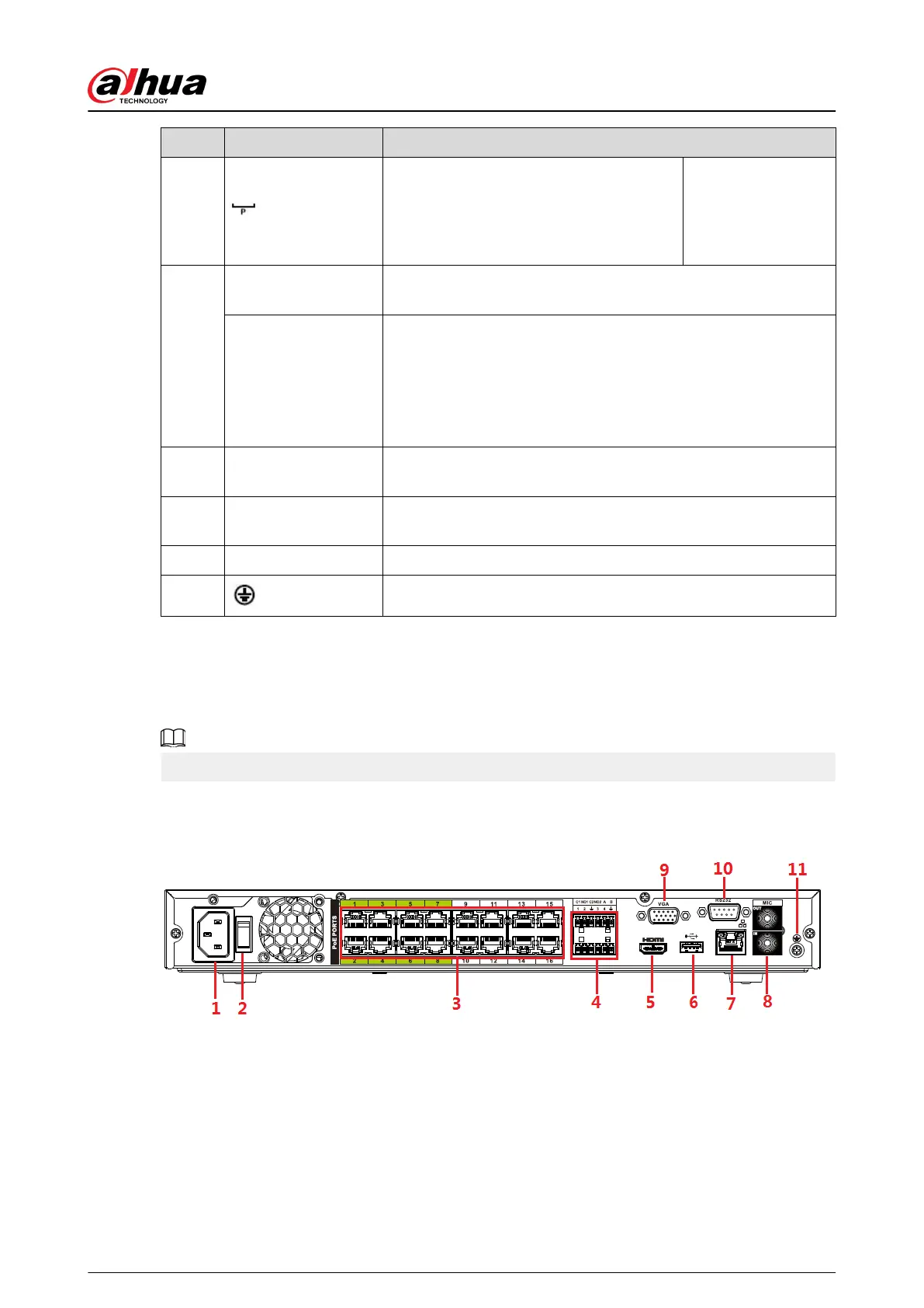 11 Power input port Input power of 100-240 V and 50-60 Hz.