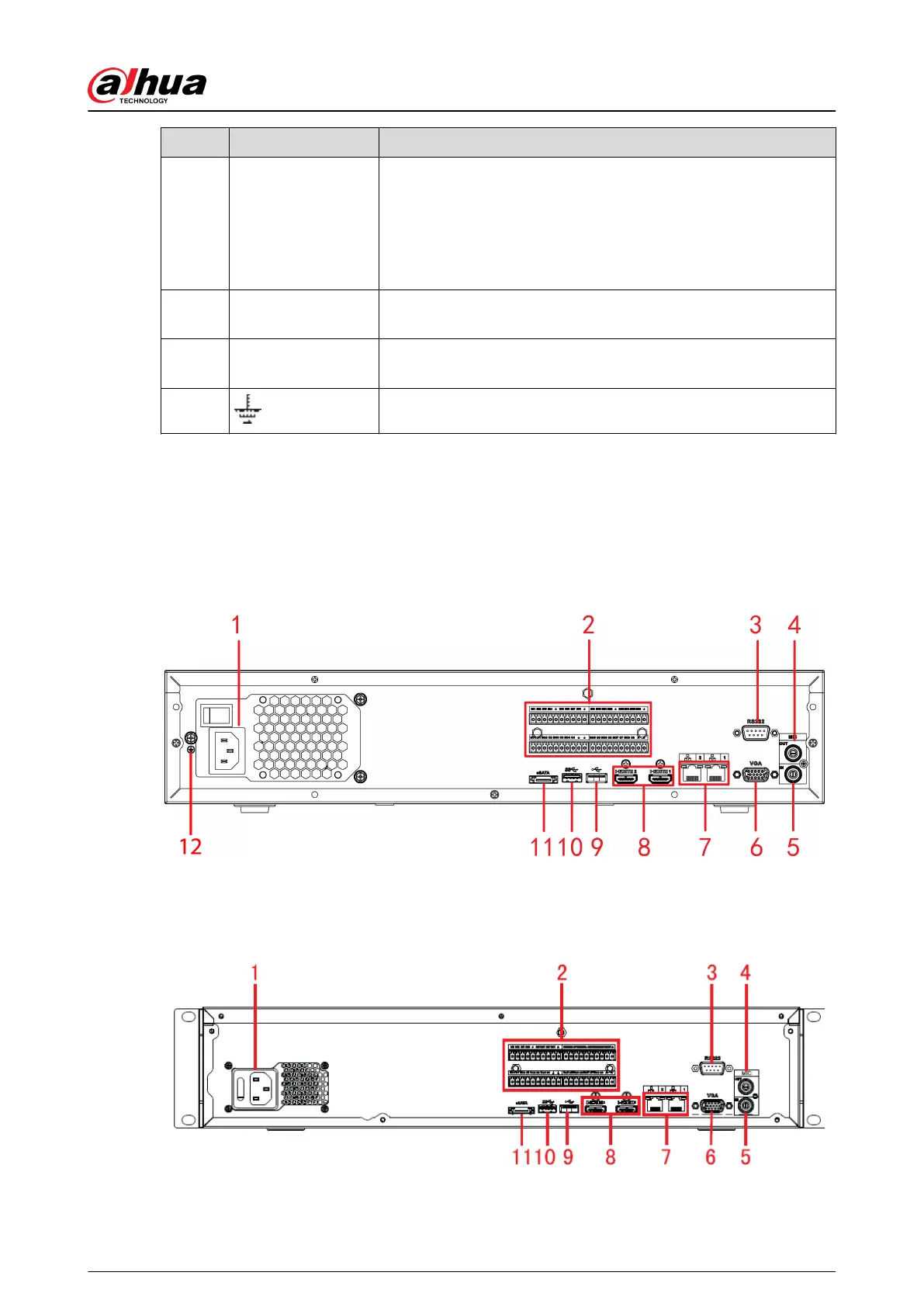 NVR608H-128-XI series rear panels are shown as below.