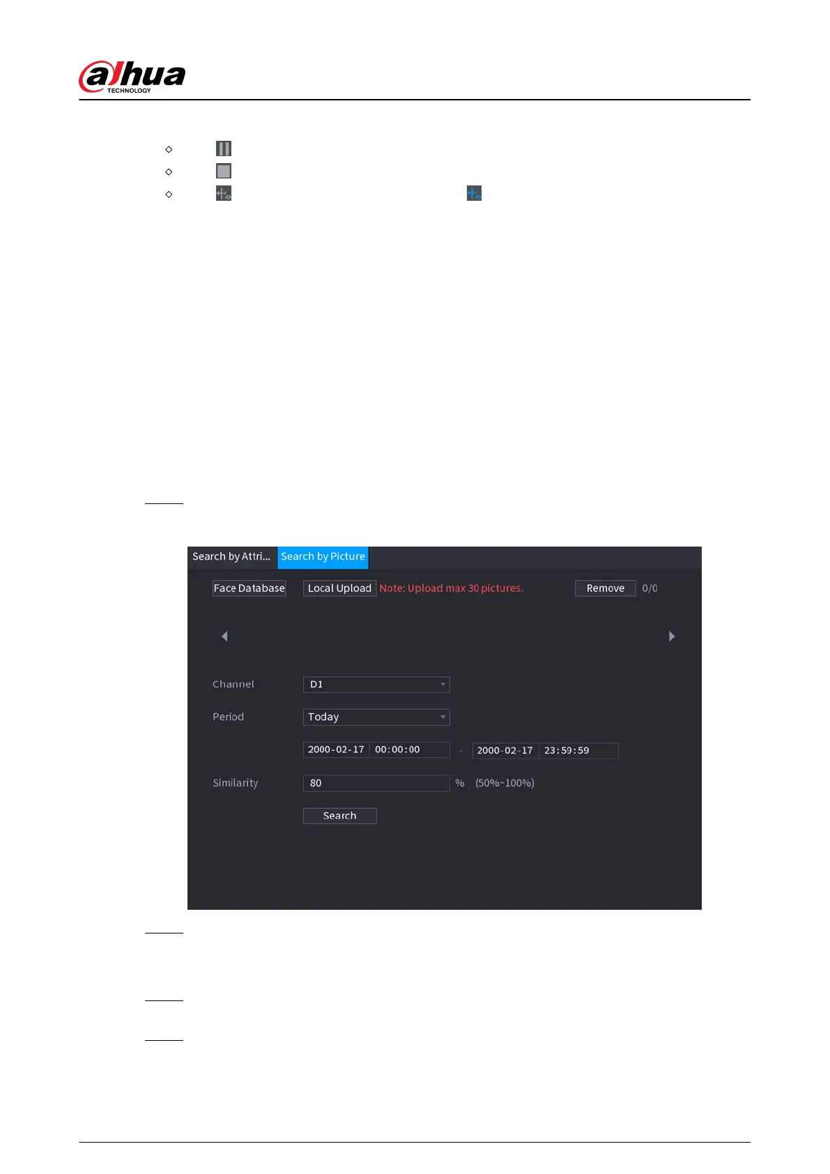 Step 1 Select Main Menu > AI > AI Search > Face Recognition > Search by Picture.