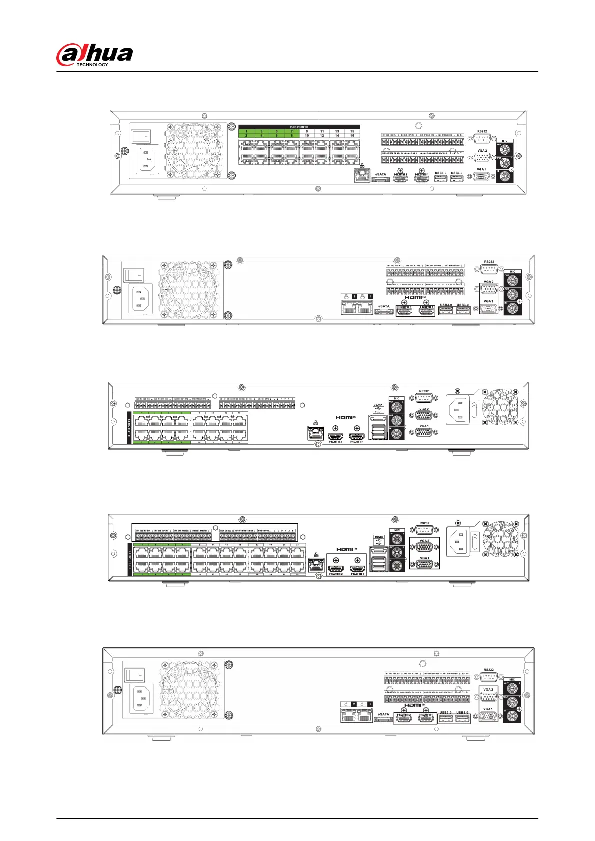 The NVR54-16P-XI/NVR54-16HP-EI series rear panel is shown as below.