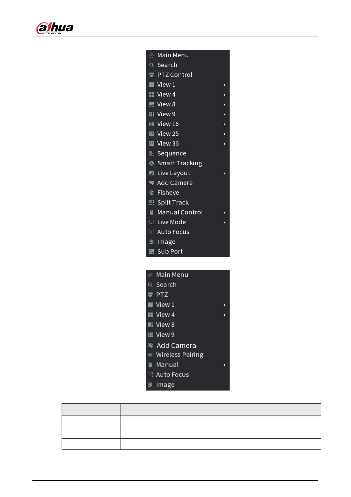 Table 5-11 Shortcut menu description