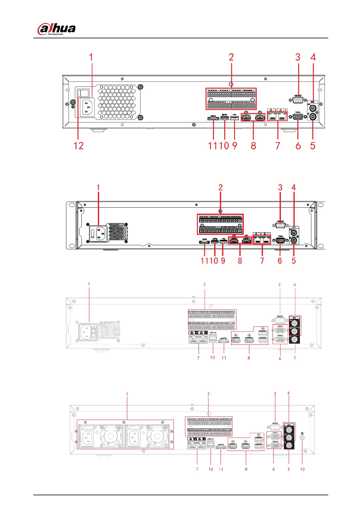 The NVR608-64-4KS2/NVR608-128-4KS2/NVR608H-32-XI/NVR608H-64-XI/NVR608H-128-XI series rear
