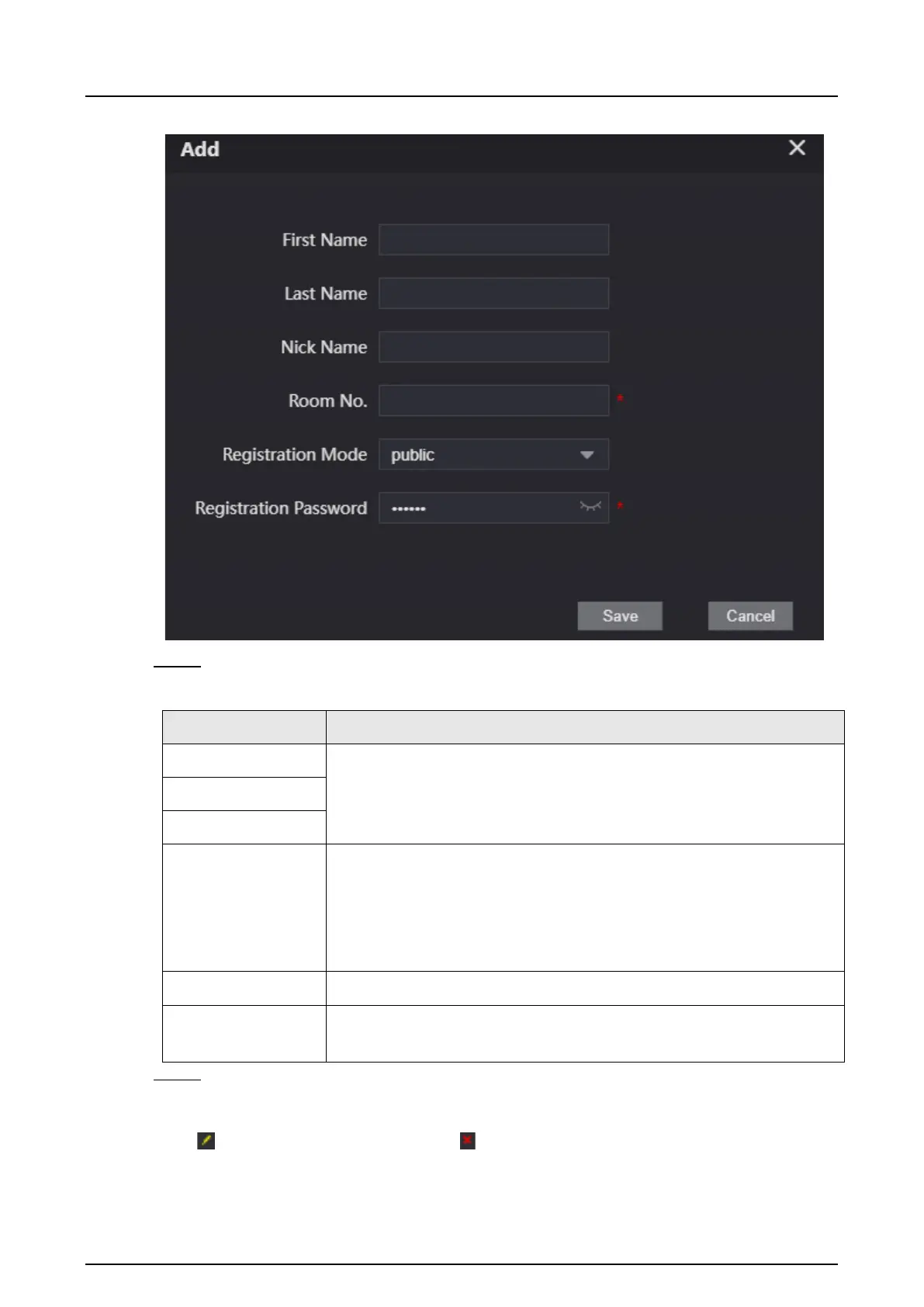 Click to modify room information, and to delete the room.