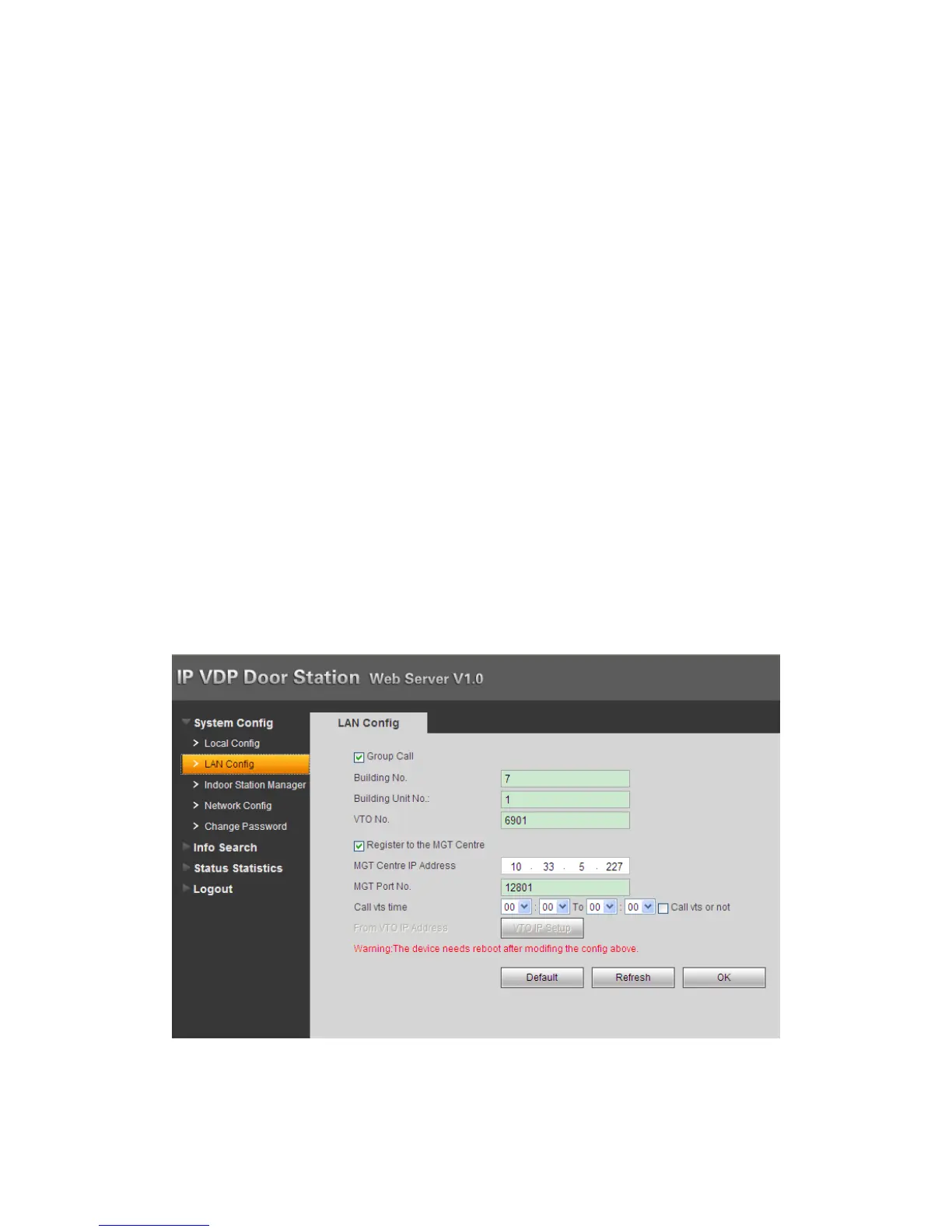 VTO can only call MGT Center. Manager center’s time can be set on management