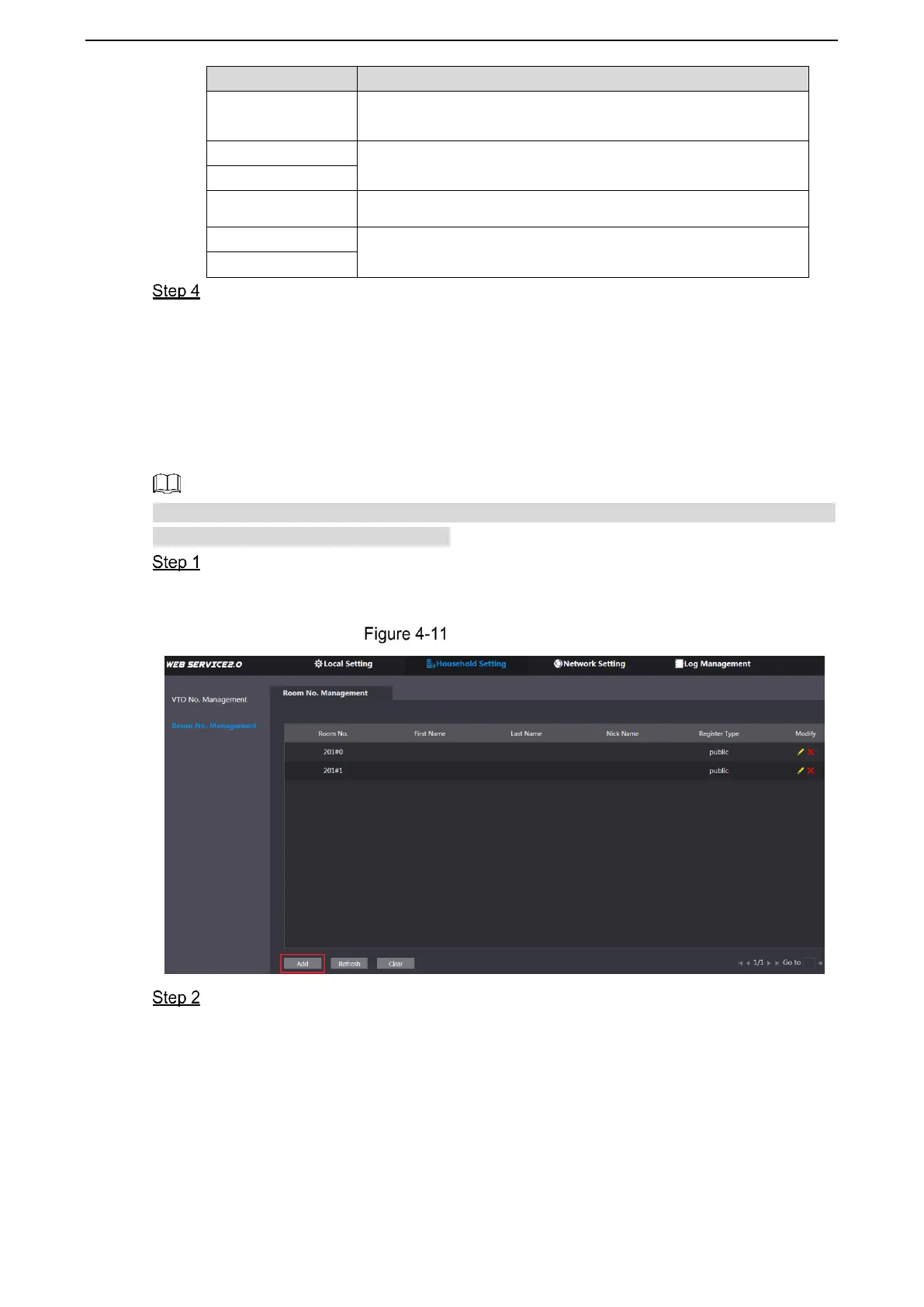 Log in the web interface of the SIP server, and then select Household Setting > Room