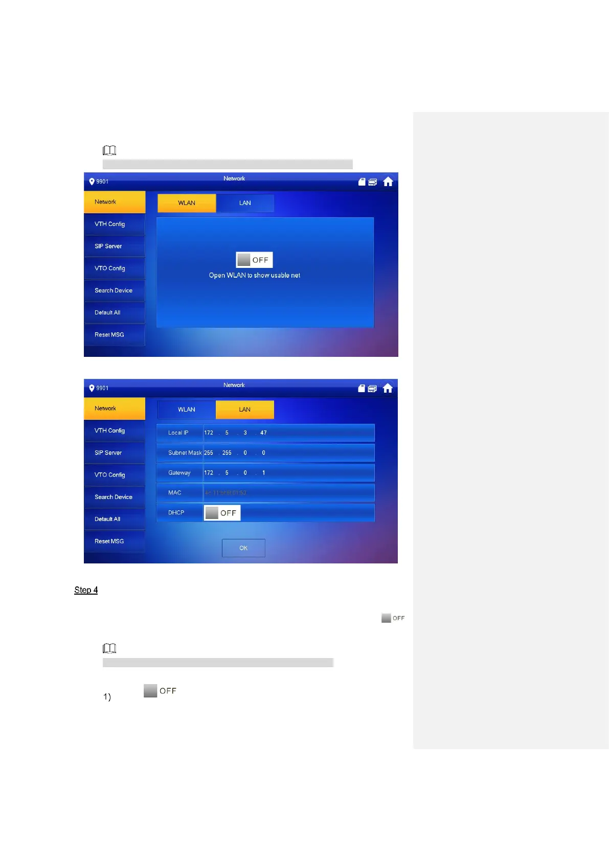 Enter “Local IP”, “Subnet Maskand “Gateway” manually, press [OK]. Or press