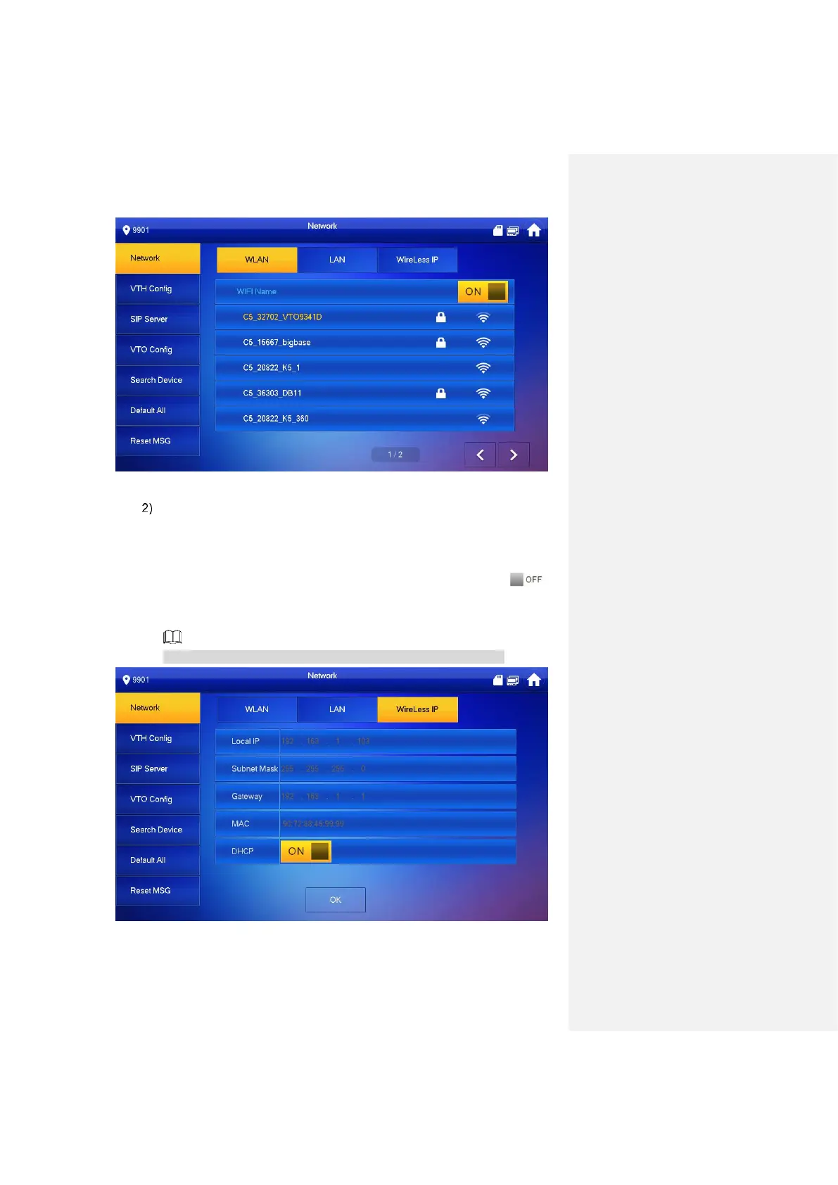 ◇ At “WLAN” interface, select Wi-Fi, click “Wireless IP” tab, press to
