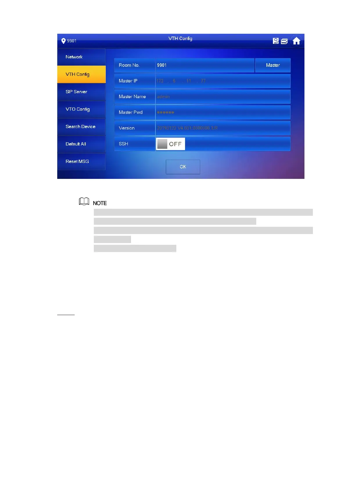 “Master Name” and “Master Pwd” are the user name and password of master VTH.