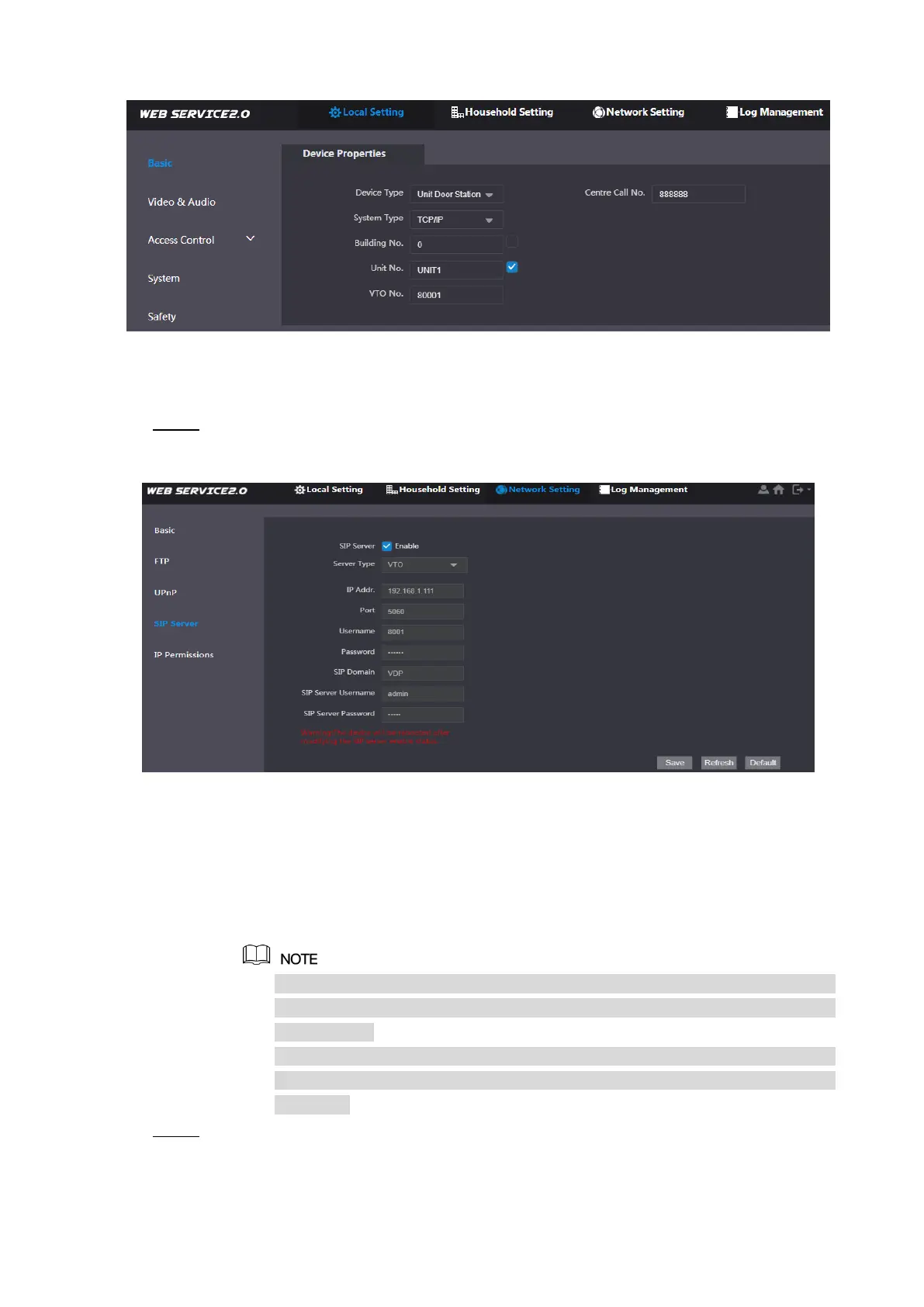 When this VTO or another VTO works as SIP server, select “Server Type” to