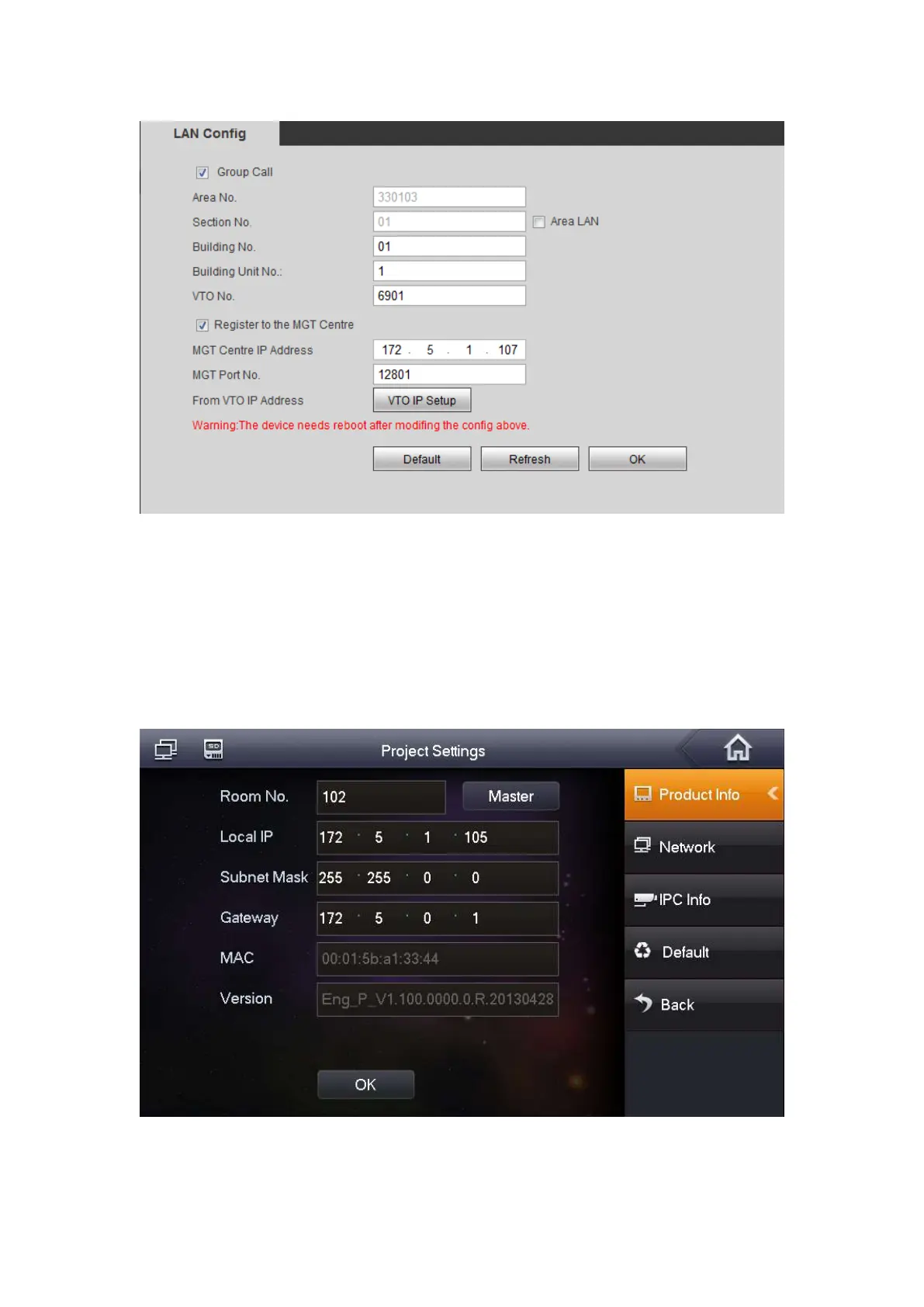 Step 2. Press Product Info, input Room No., Local IP and etc as in Figure 4- 9.