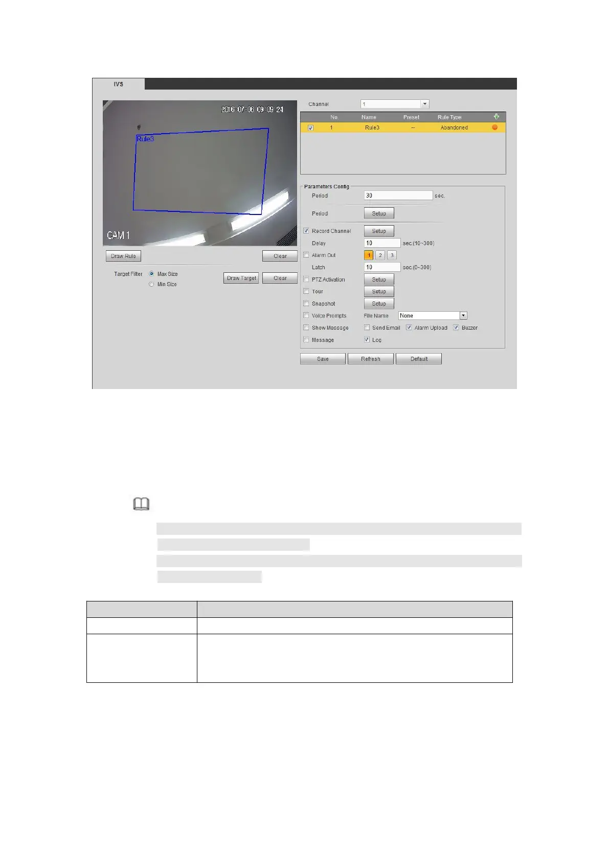 It is to detect there is any abandoned object in the surveillance area for the specified time.
